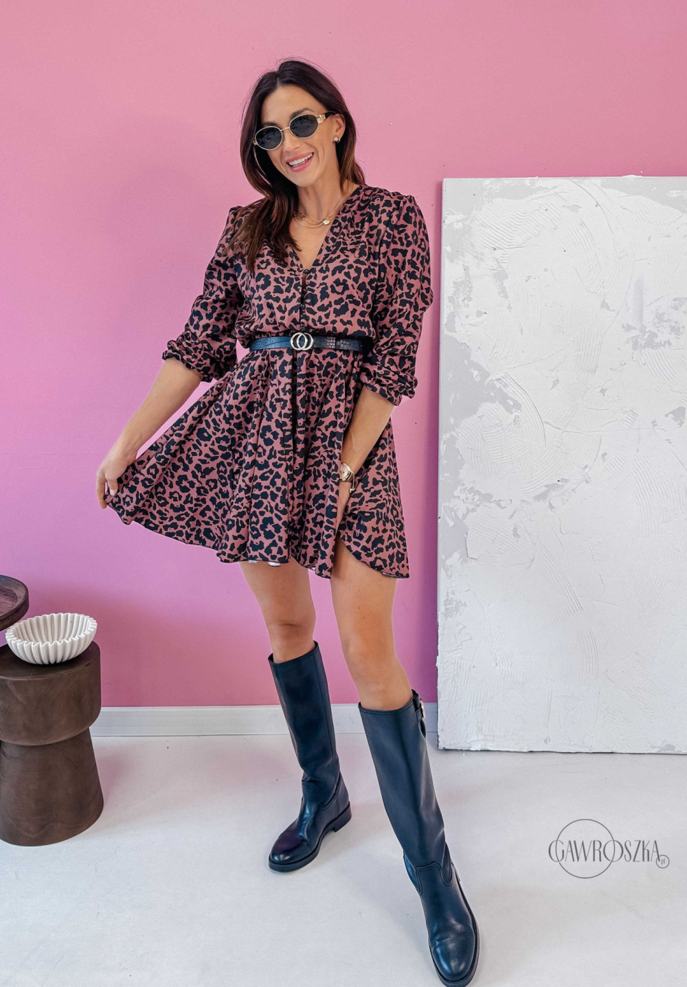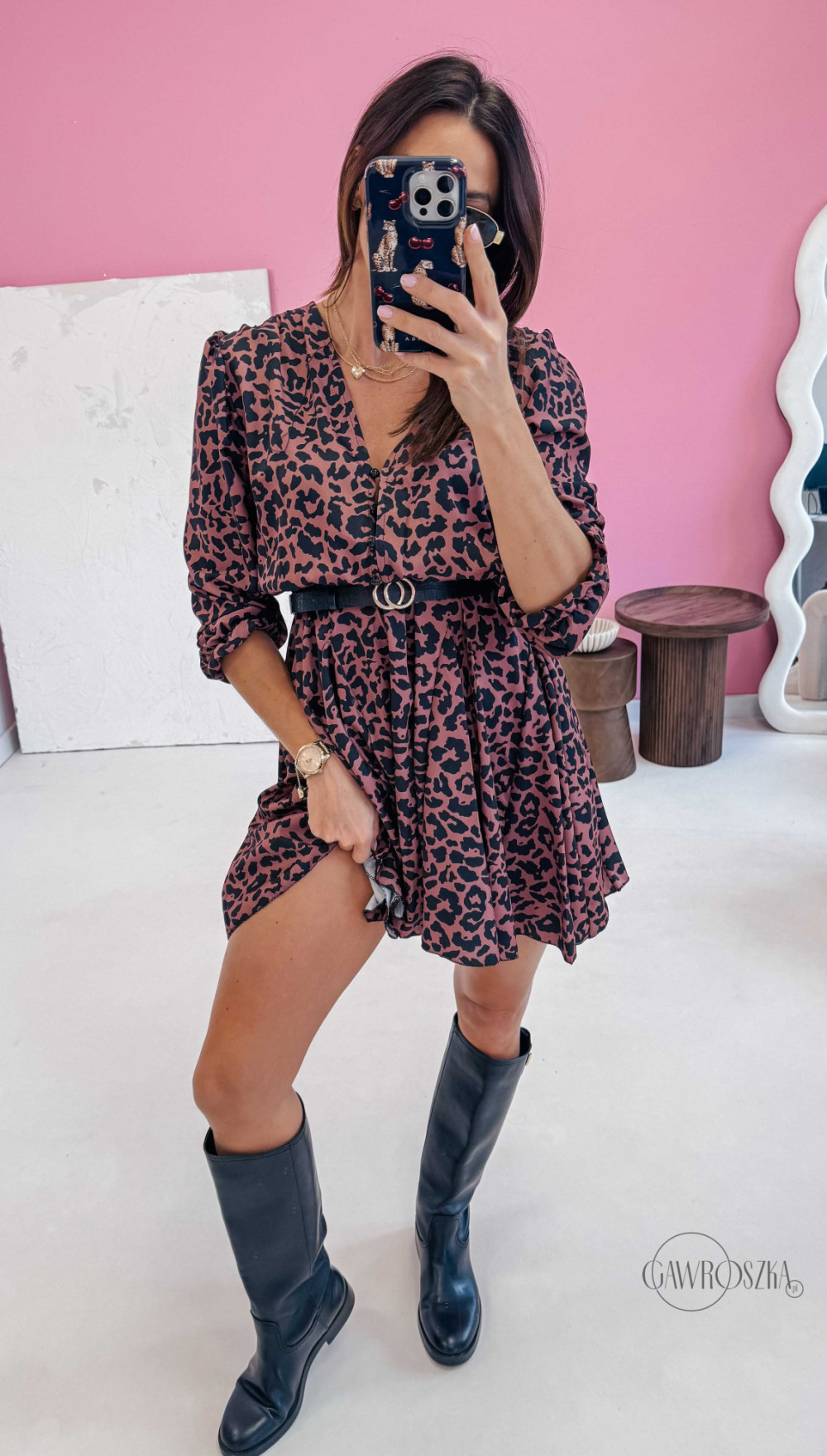 Nasza bestsellerowa sukienka o długości mini. Ten model ma długi rękaw zakończony marszczeniem. Dekolt wykończony zawsze czterema guziczkami. W pasie wszyta gumka, podkreślająca talię. Sukienka dostępna w wielu printach do wyboru. Możesz nosić sukienkę zarówno w sezonie wiosenno-letnim, jak i jesienno-zimowym.