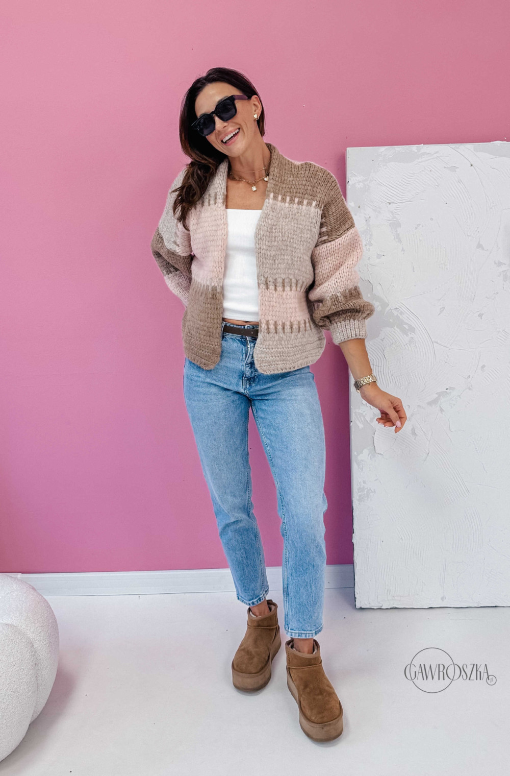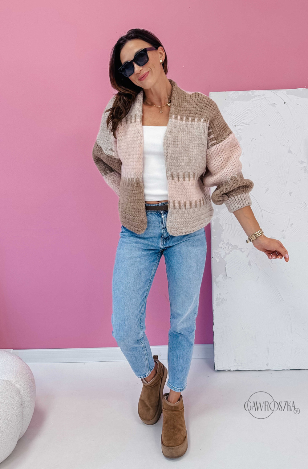 Kardigan Aurora - latte puder róż