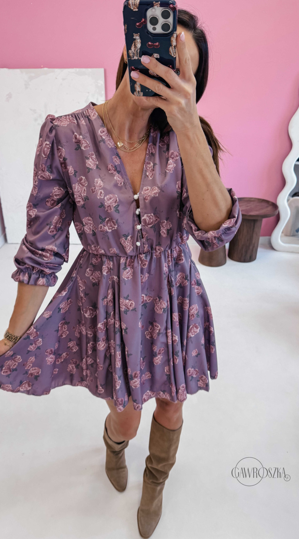 Nasza bestsellerowa sukienka o długości mini. Ten model ma długi rękaw zakończony marszczeniem. Dekolt wykończony zawsze czterema guziczkami. W pasie wszyta gumka, podkreślająca talię. Sukienka dostępna w wielu printach do wyboru. Możesz nosić sukienkę zarówno w sezonie wiosenno-letnim, jak i jesienno-zimowym.