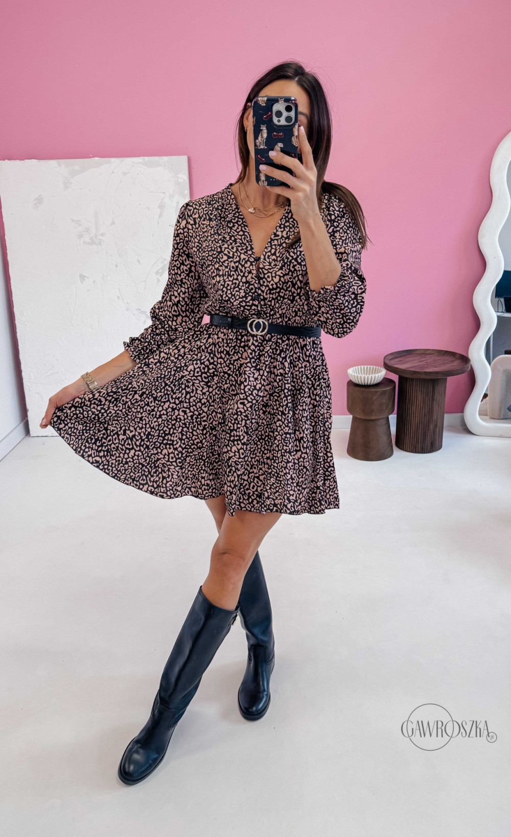 Nasza bestsellerowa sukienka o długości mini. Ten model ma długi rękaw zakończony marszczeniem. Dekolt wykończony zawsze czterema guziczkami. W pasie wszyta gumka, podkreślająca talię. Sukienka dostępna w wielu printach do wyboru. Możesz nosić sukienkę zarówno w sezonie wiosenno-letnim, jak i jesienno-zimowym.
