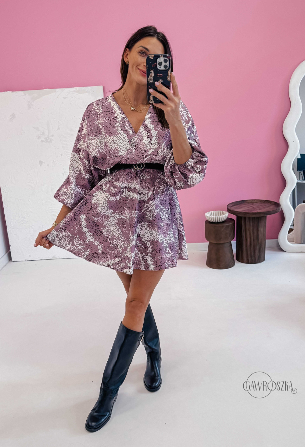 Sukienka ala kimono - wrzosowa