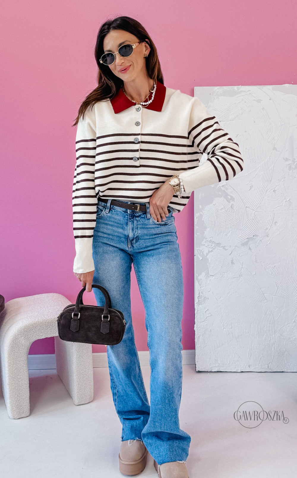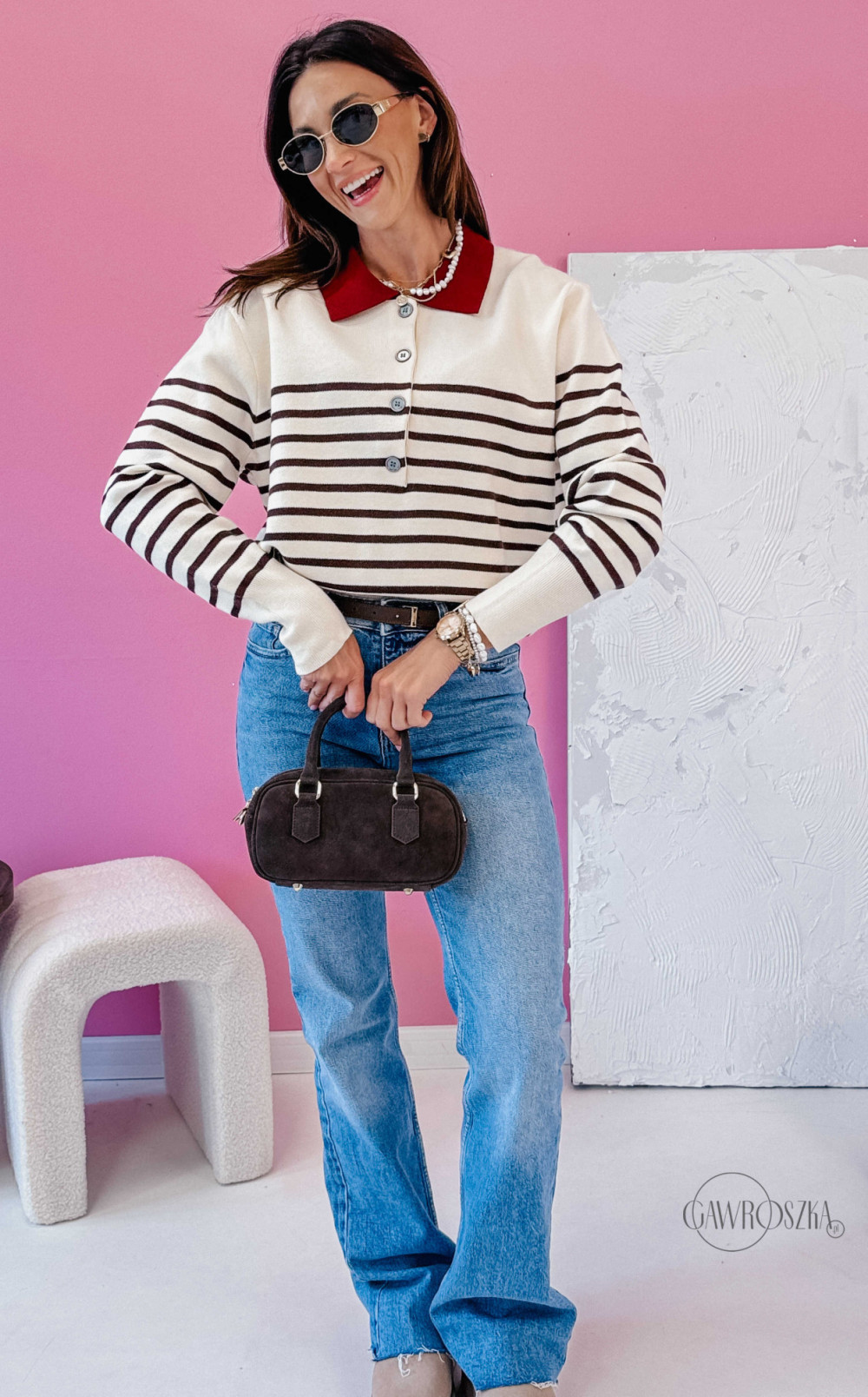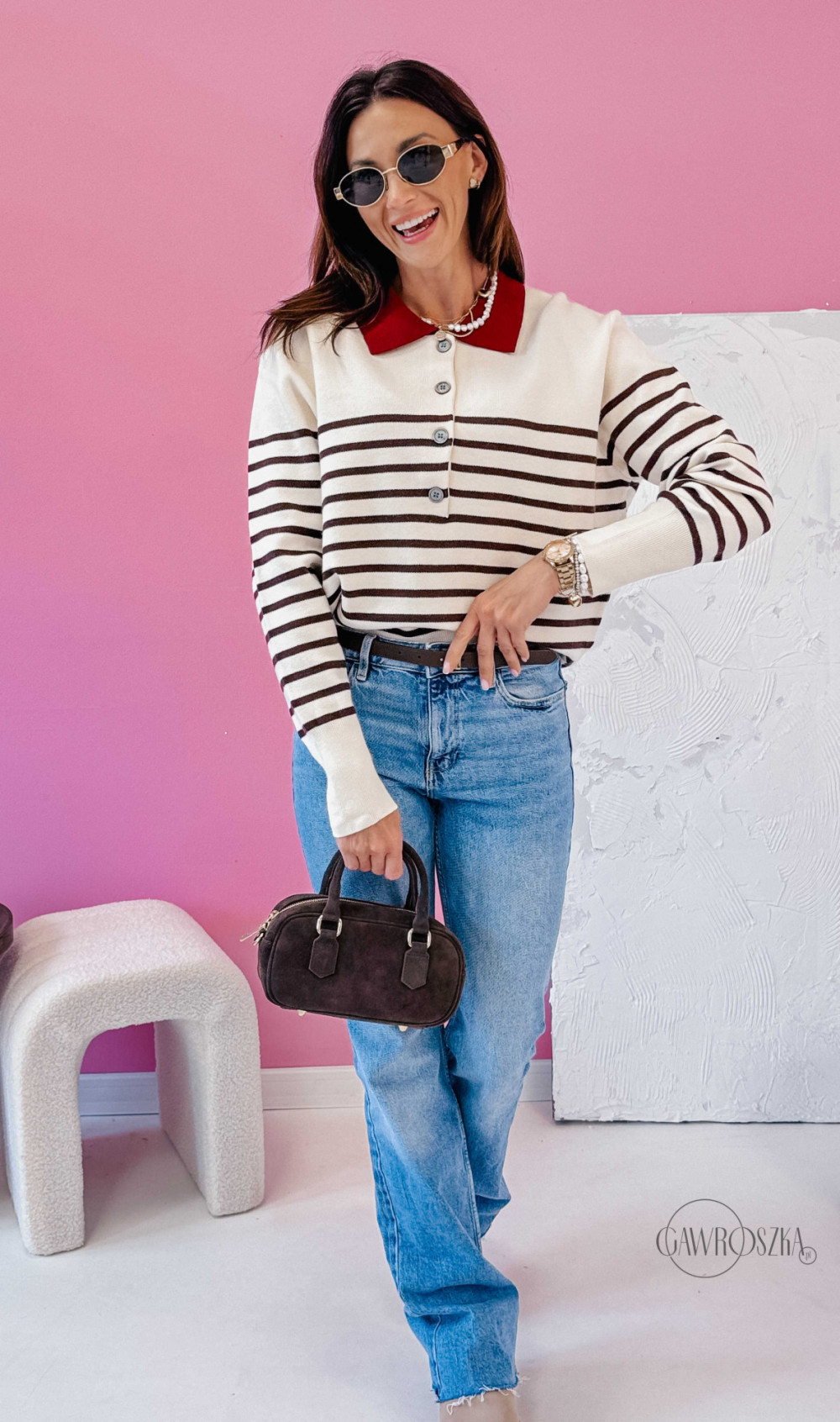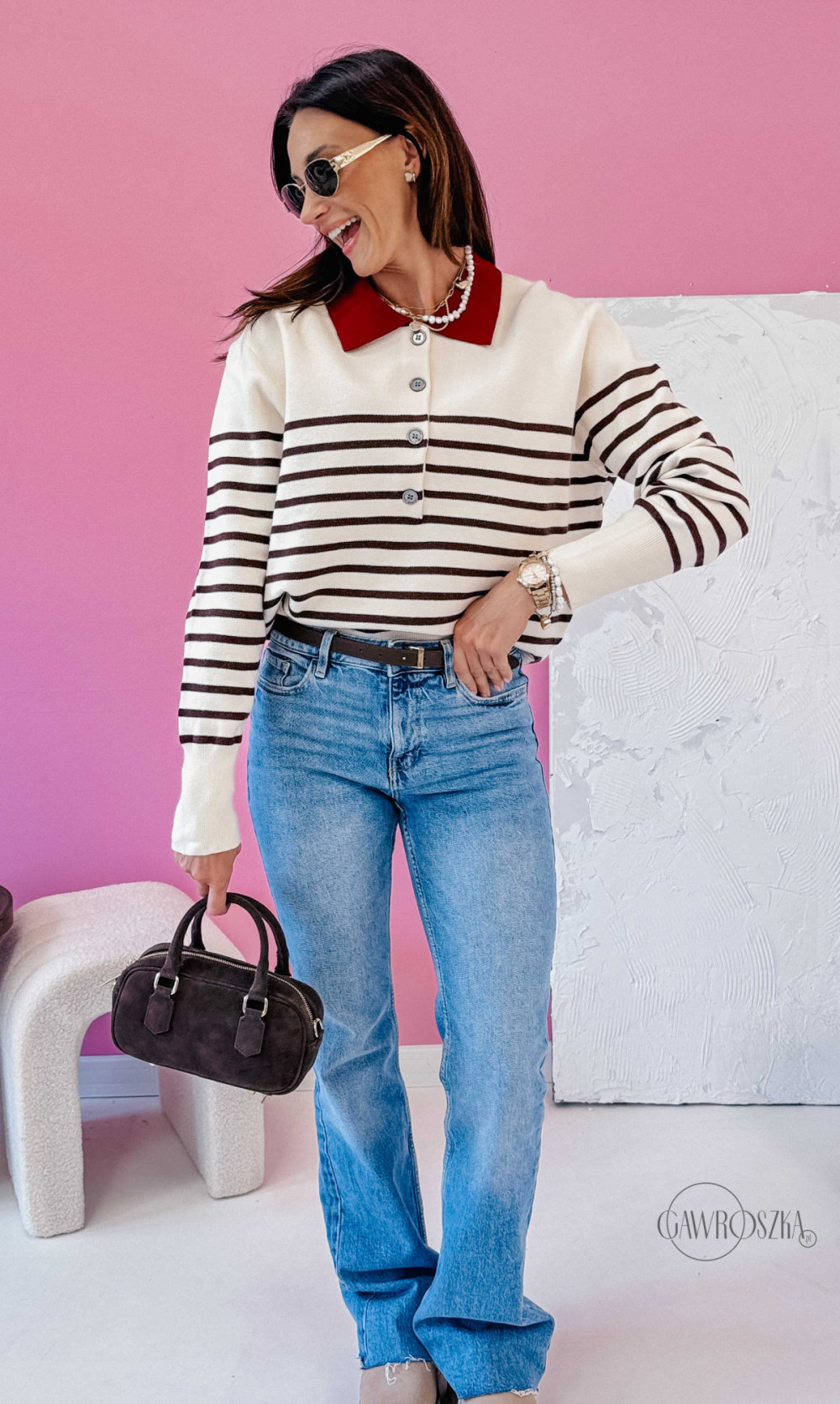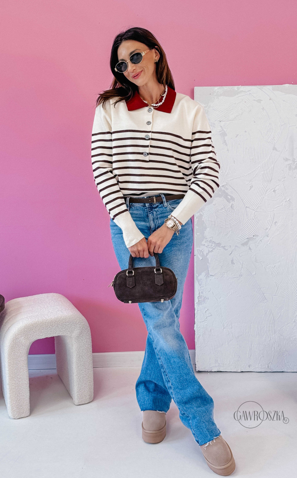 Sweterek z kołnierzykiem Lamir kołnierzyk bordo