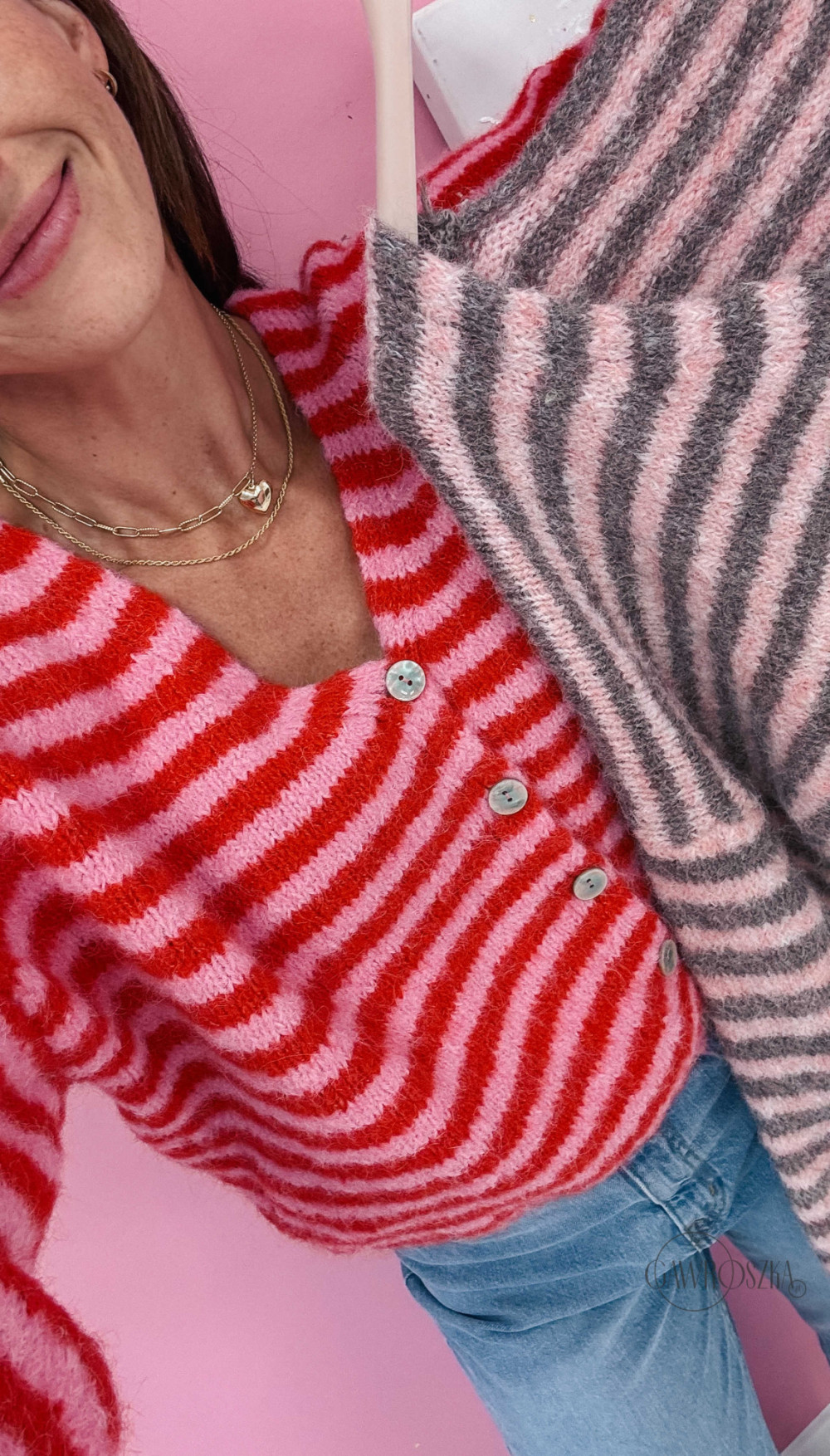 Sweter rozpinany Piza dwukolorowy - róż czerwień