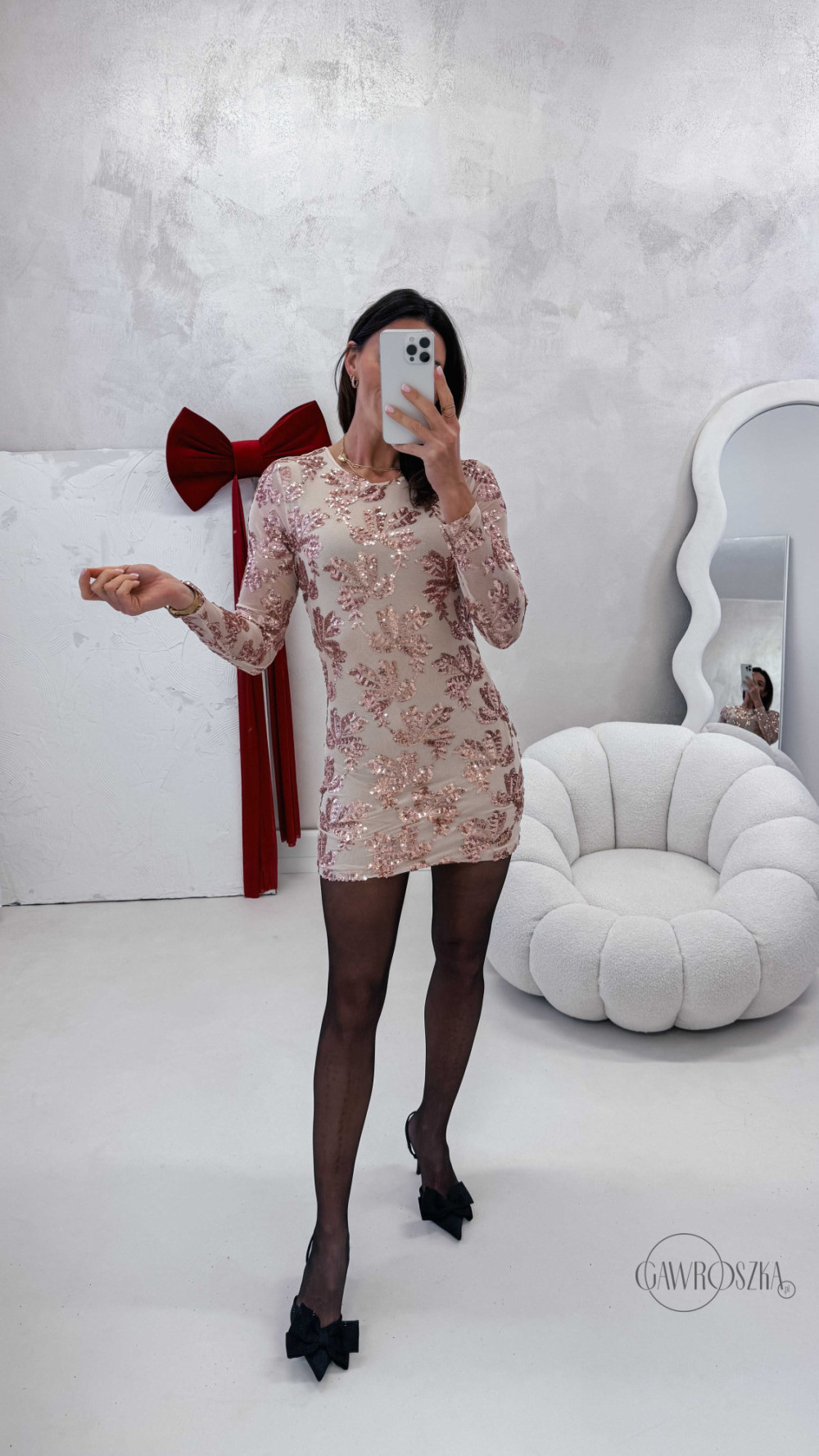 Sukienka mini z cekinami - beżowa