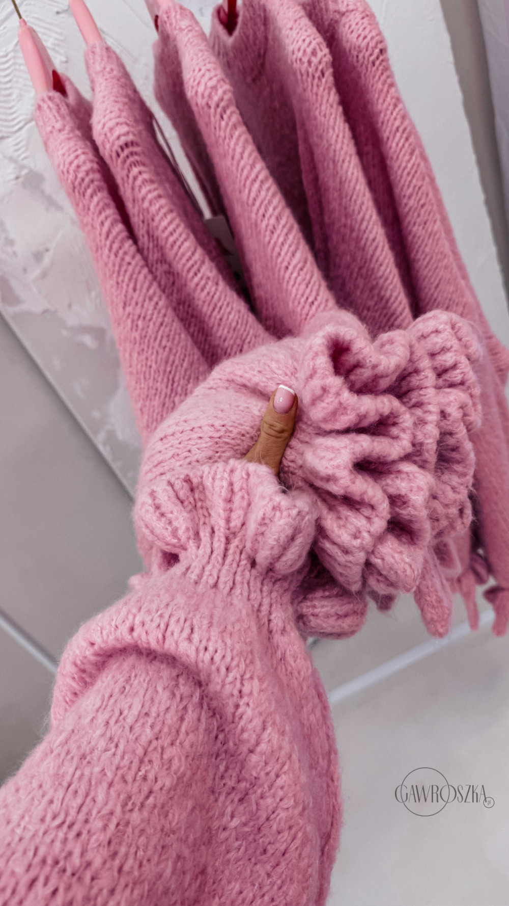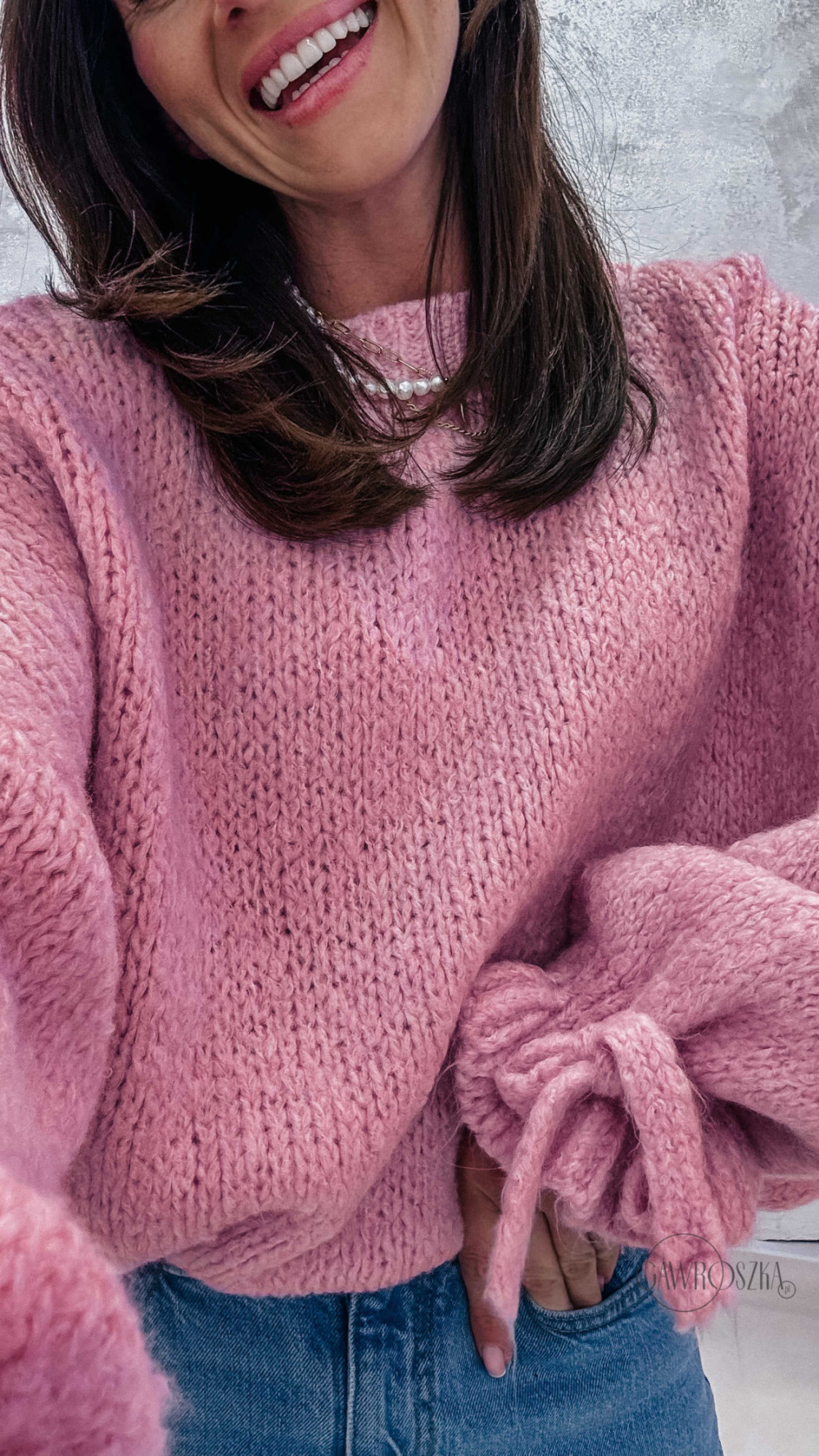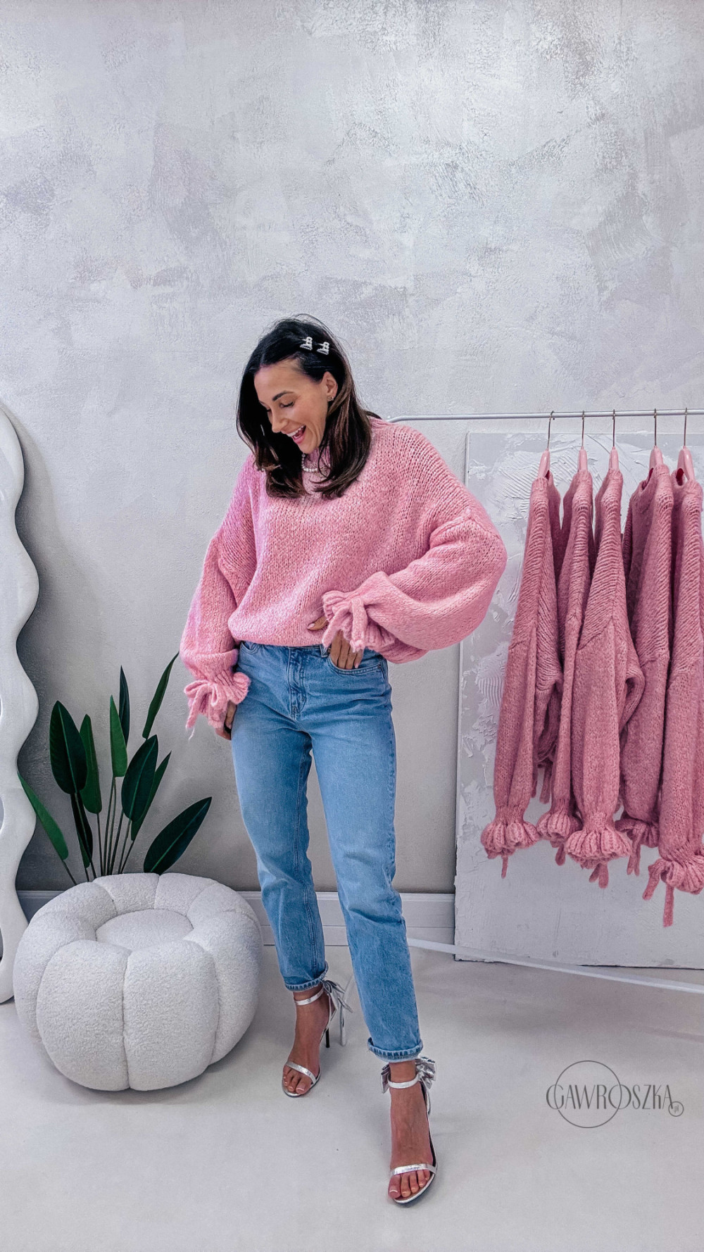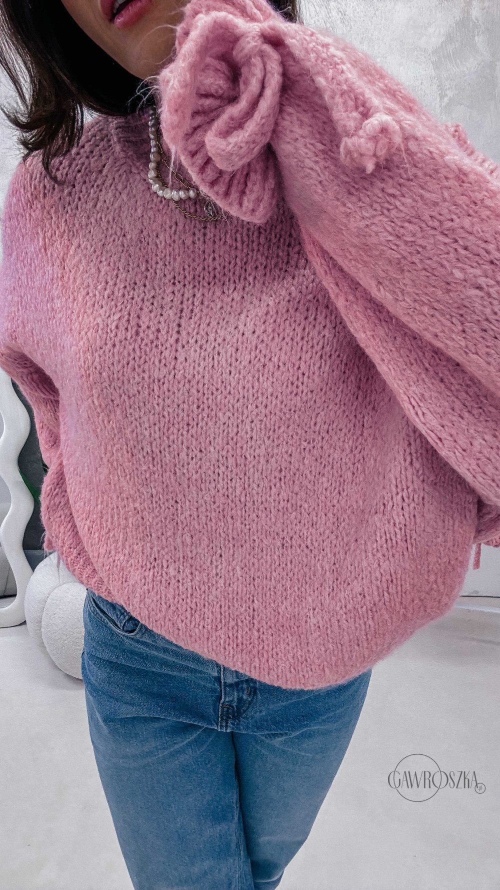 Miękki, przytulny i absolutnie wyjątkowy — sweter z efektownymi rękawami wykończonymi ozdobnym wiązaniem to propozycja dla kobiet, które lubią łączyć wygodę z modnym detalem. Luźny fason pięknie układa się na sylwetce, a przyjemna dzianina otula i zapewnia komfort noszenia przez cały dzień.