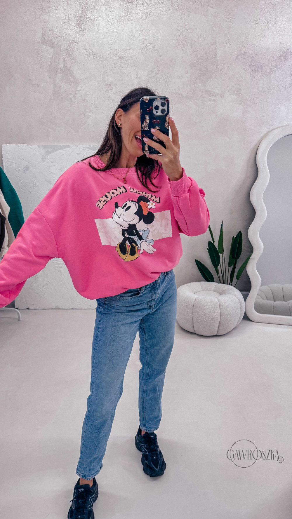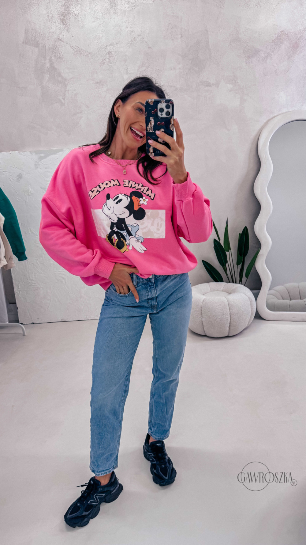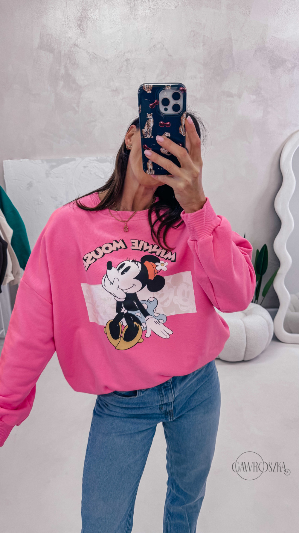 Dziewczęca, wygodna i pełna pozytywnej energii. Bluza z motywem Minnie to świetna propozycja na co dzień — miękka w dotyku, komfortowa i łatwa do stylizowania z jeansami czy spódnicą.