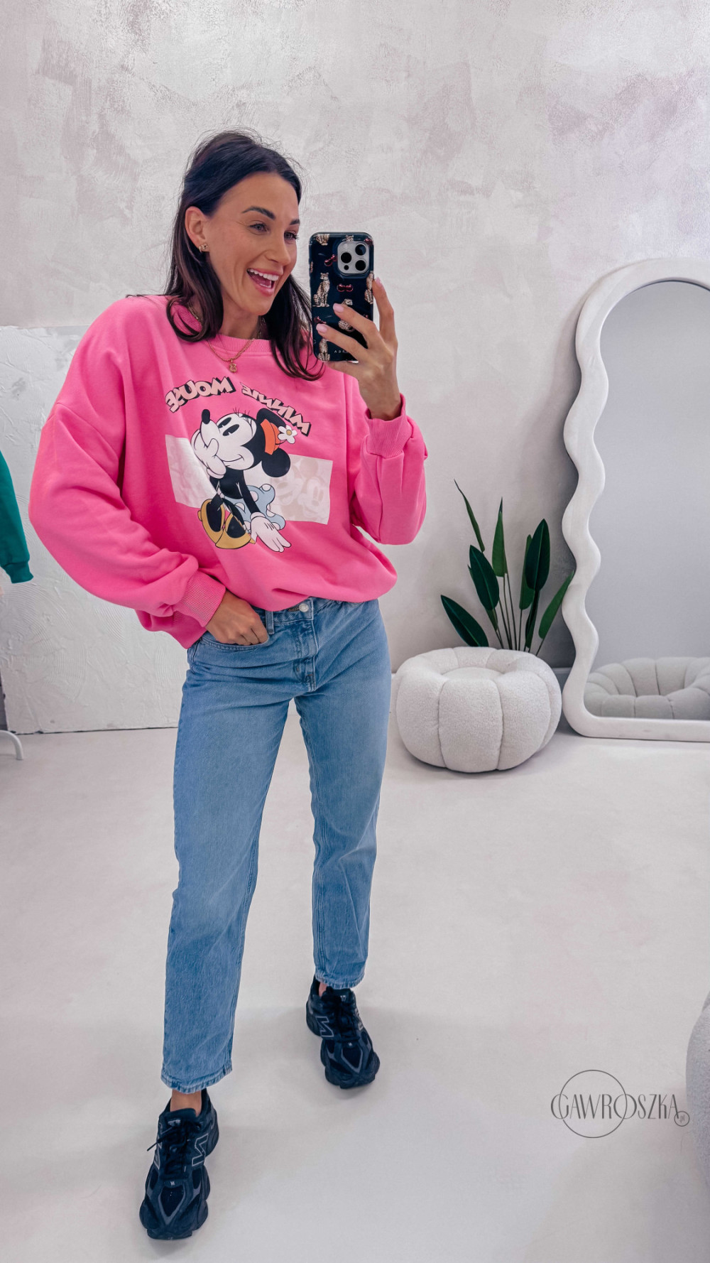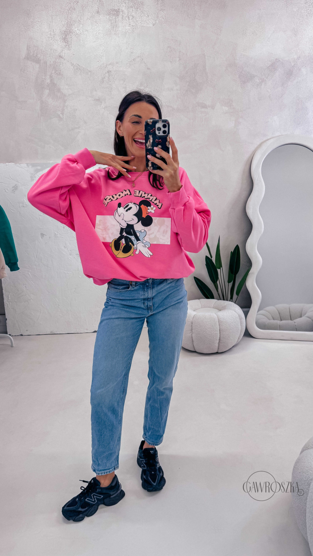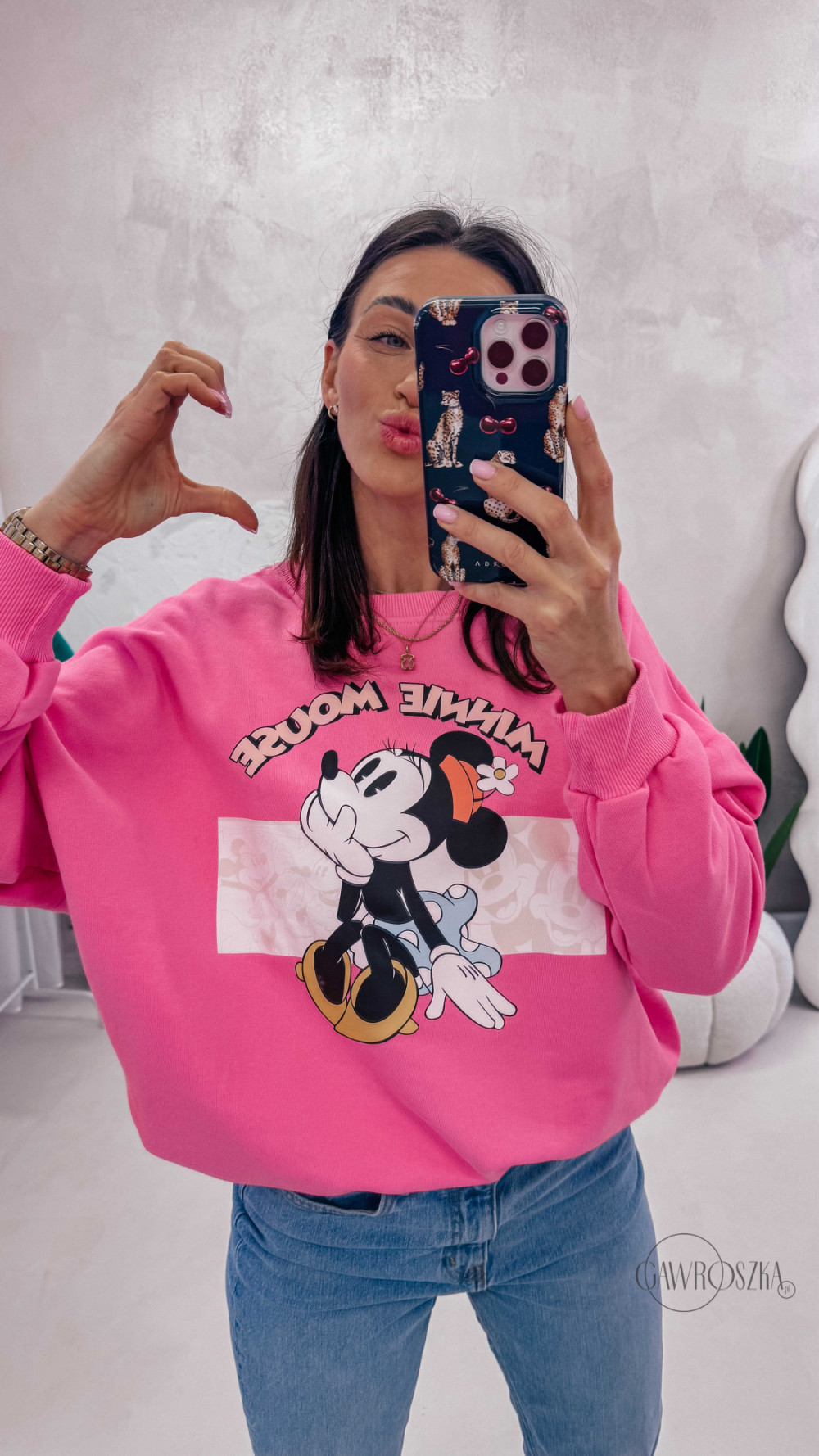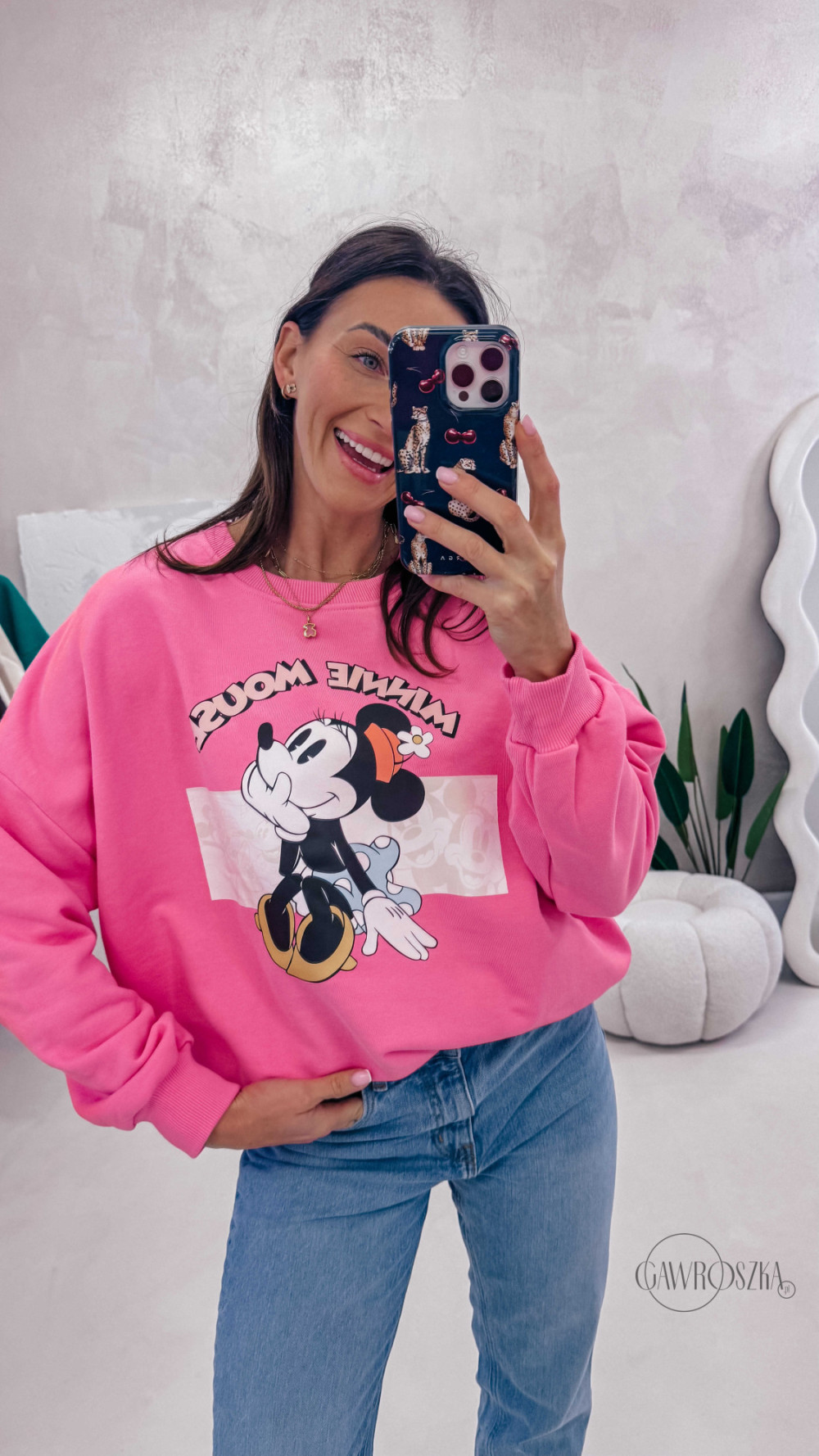 Dziewczęca, wygodna i pełna pozytywnej energii. Bluza z motywem Minnie to świetna propozycja na co dzień — miękka w dotyku, komfortowa i łatwa do stylizowania z jeansami czy spódnicą.