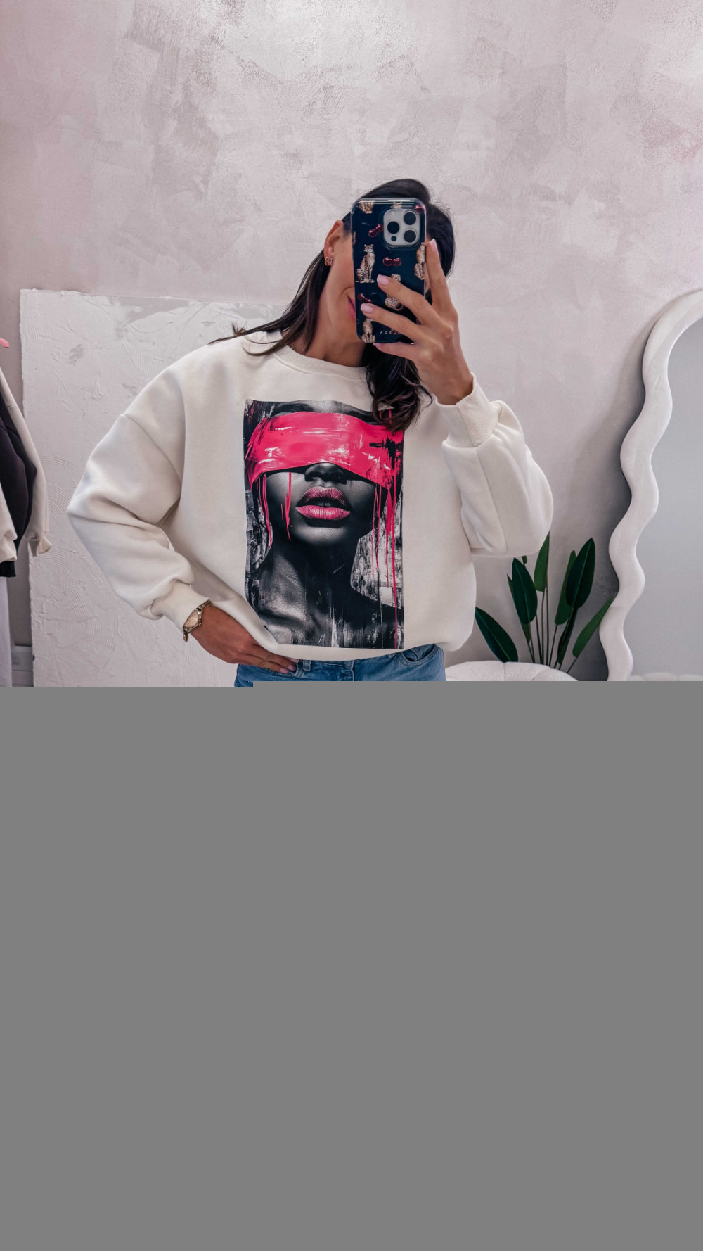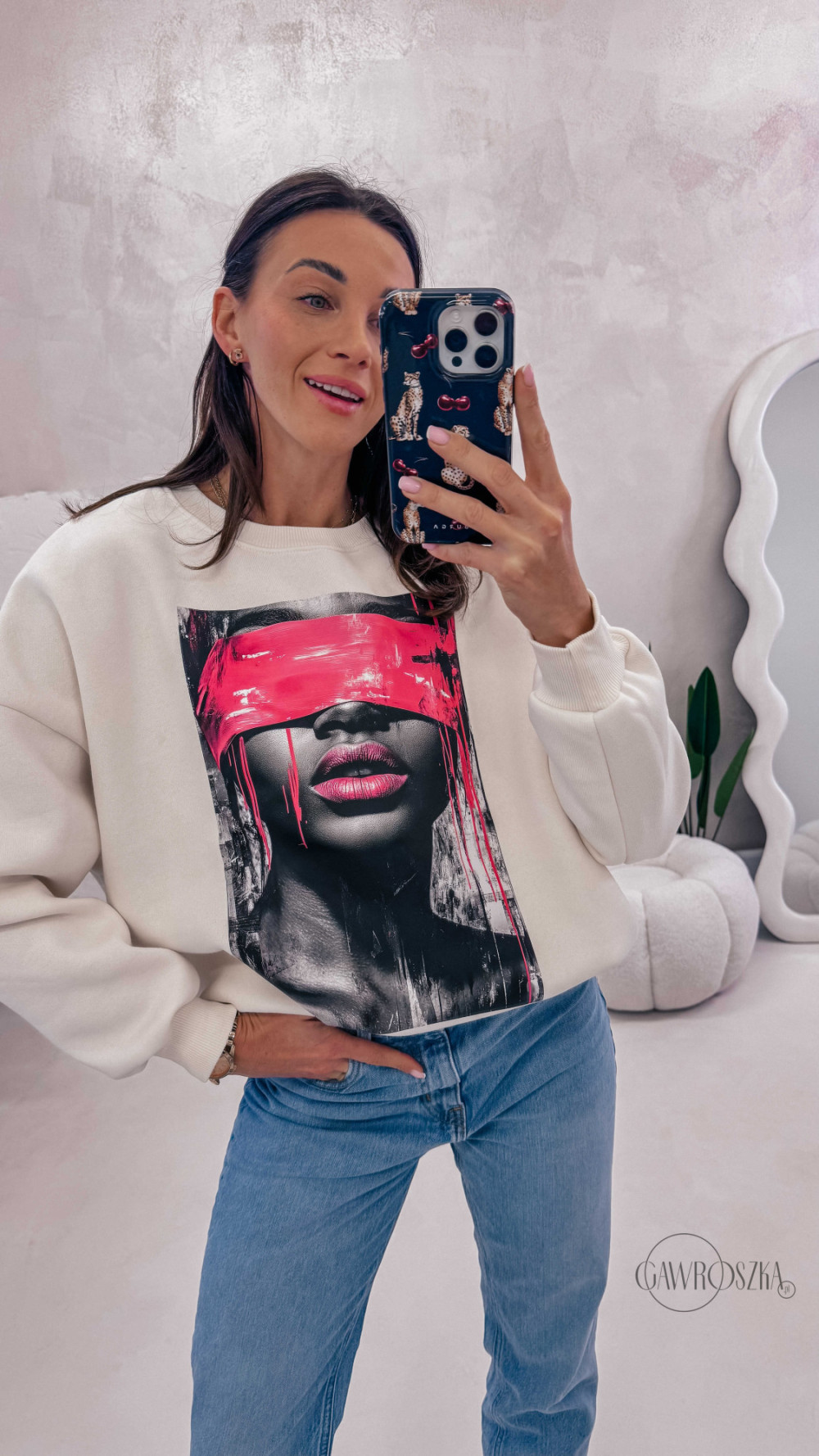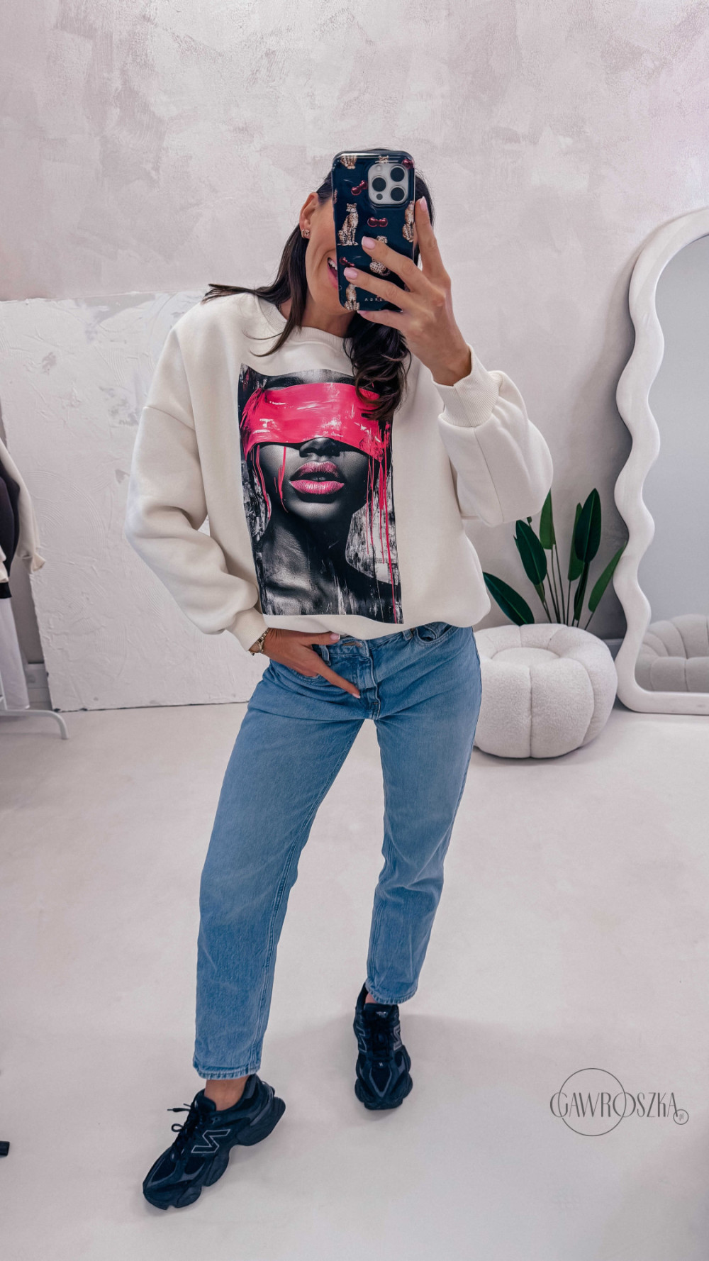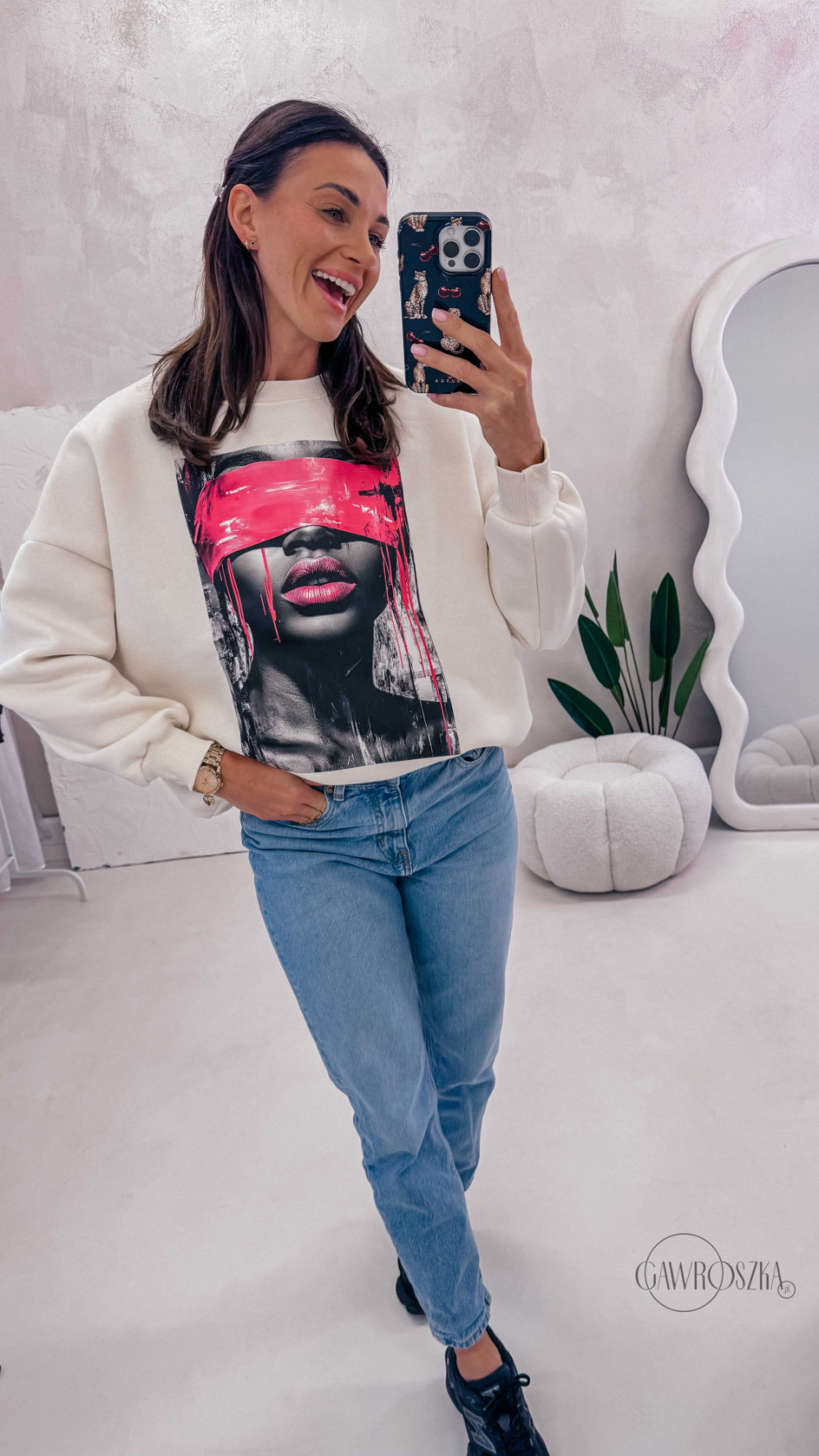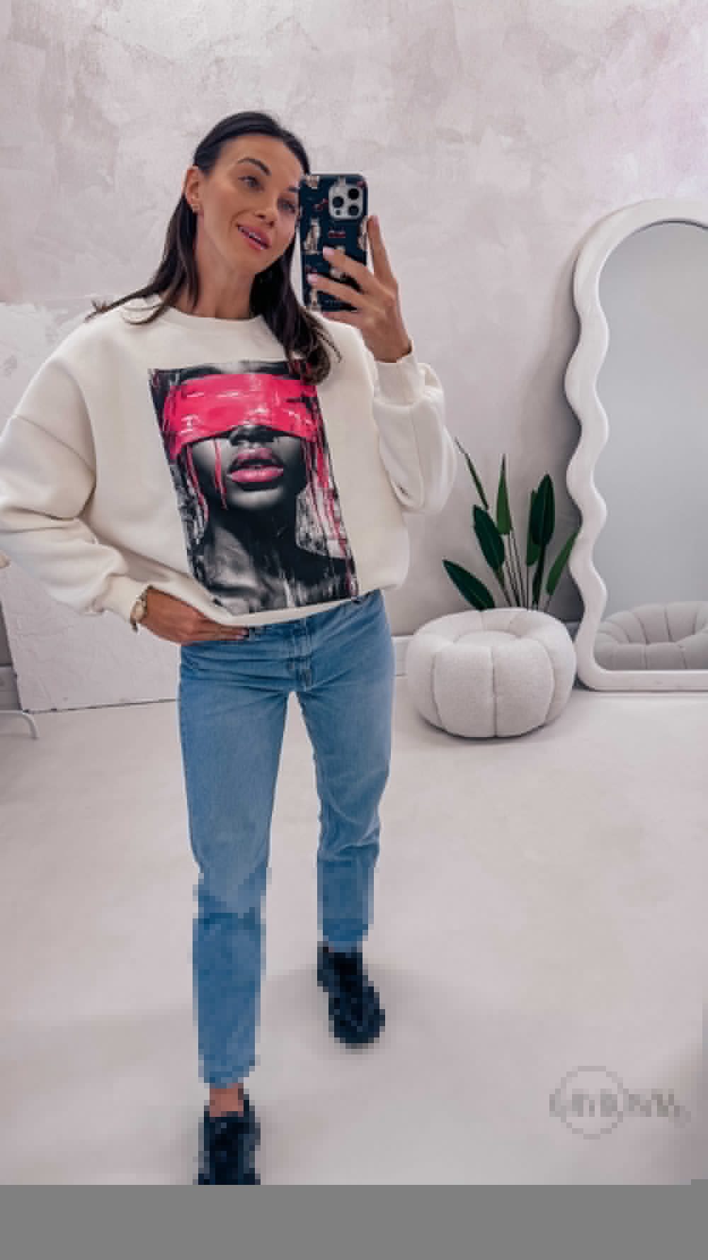 Wyrazista, stylowa i pełna charakteru — bluza z artystycznym nadrukiem twarzy to propozycja dla kobiet, które lubią modę z pazurem. Luźny fason zapewnia komfort noszenia, a efektowna grafika przyciąga spojrzenia i nadaje stylizacji nowoczesny charakter.