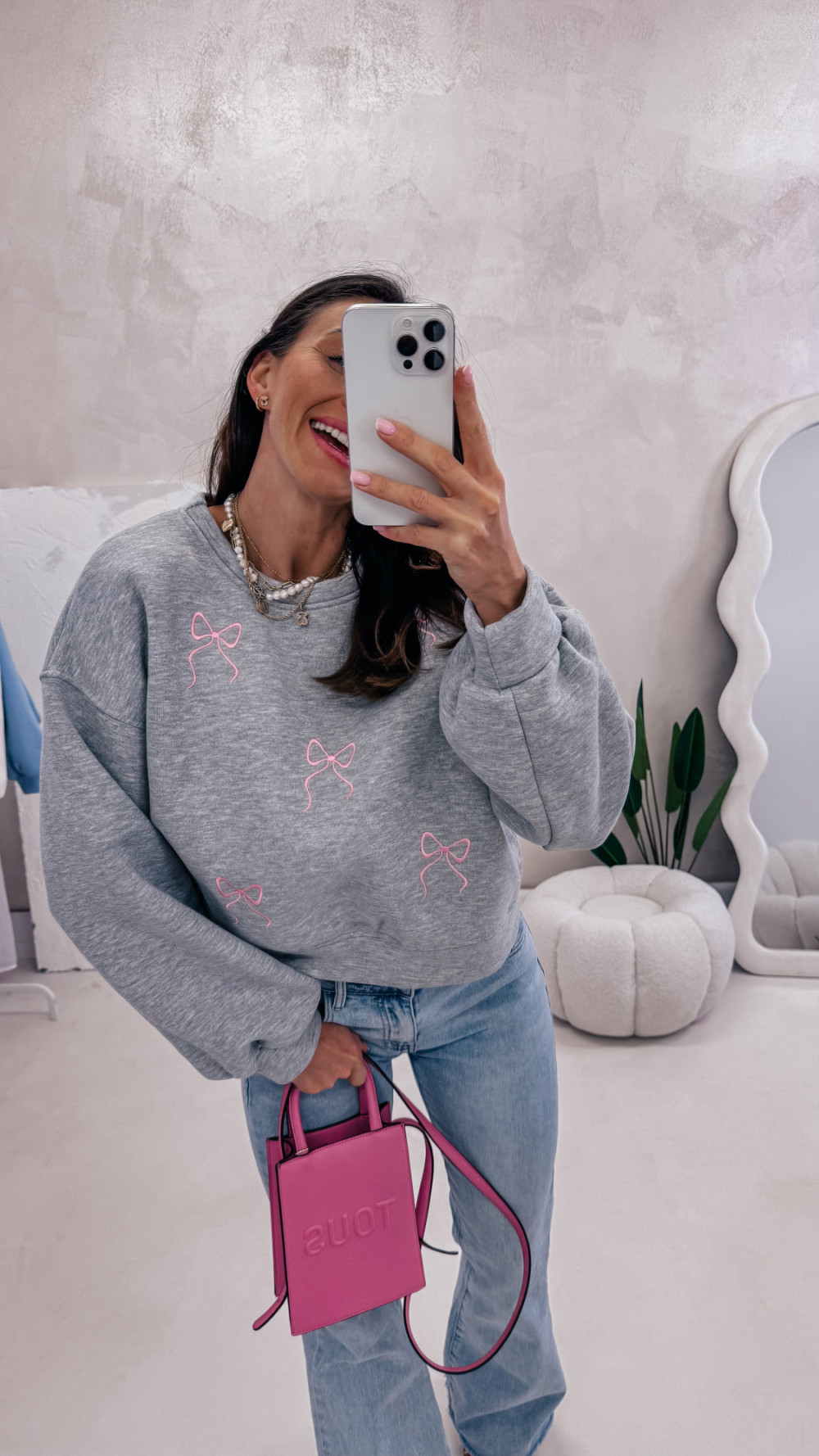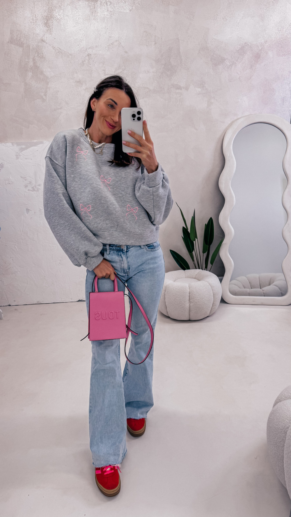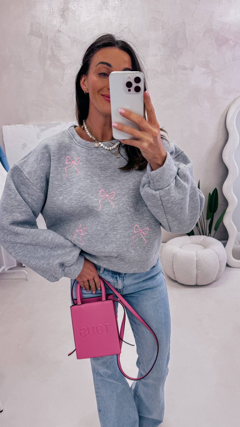 Miękka, wygodna i pełna uroku — bluza z delikatnym motywem kokardek to idealna propozycja na codzienne stylizacje z nutą słodyczy. Luźny fason zapewnia komfort noszenia, a przyjemna w dotyku tkanina sprawia, że to model, po który chce się sięgać każdego dnia.