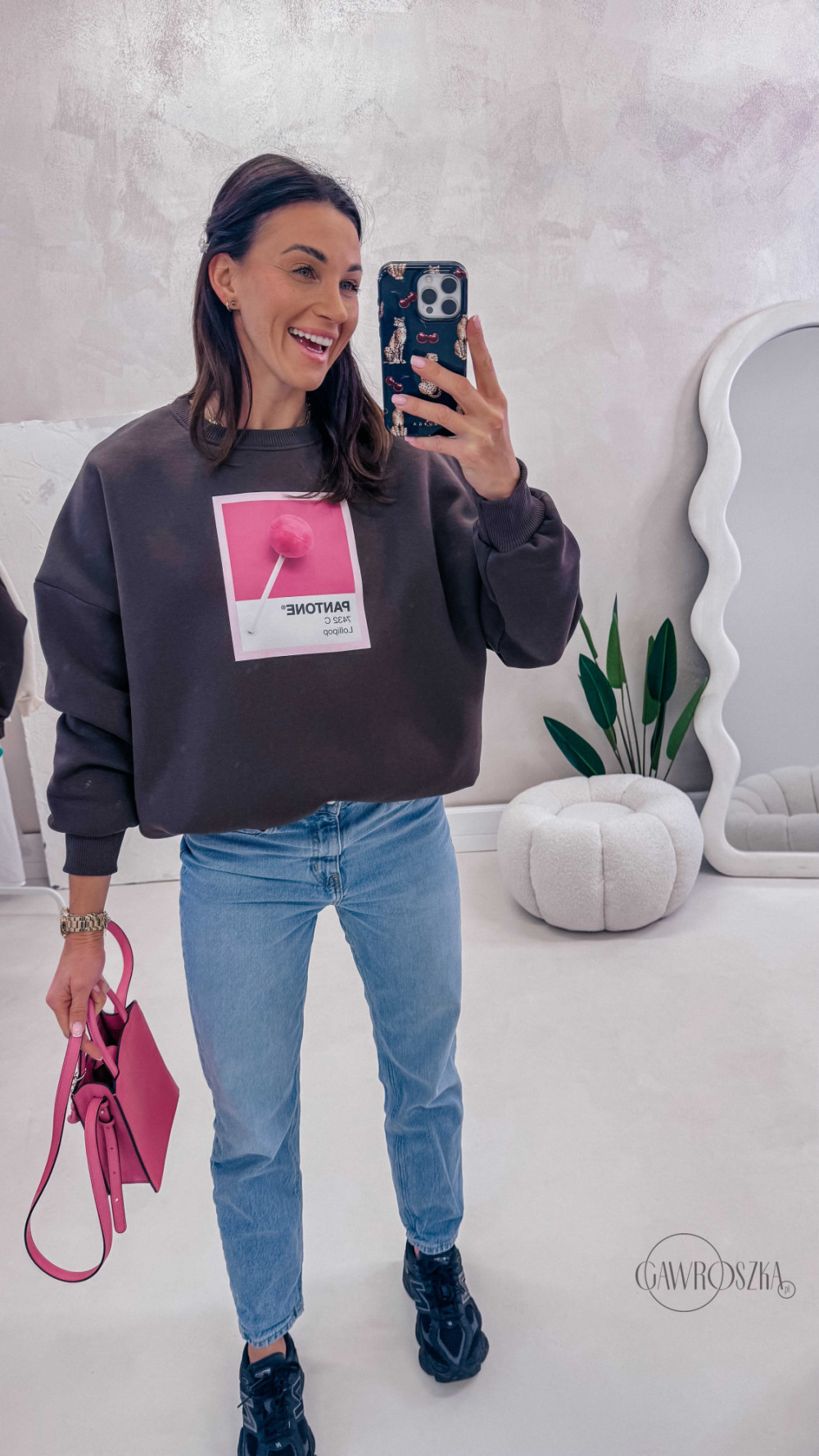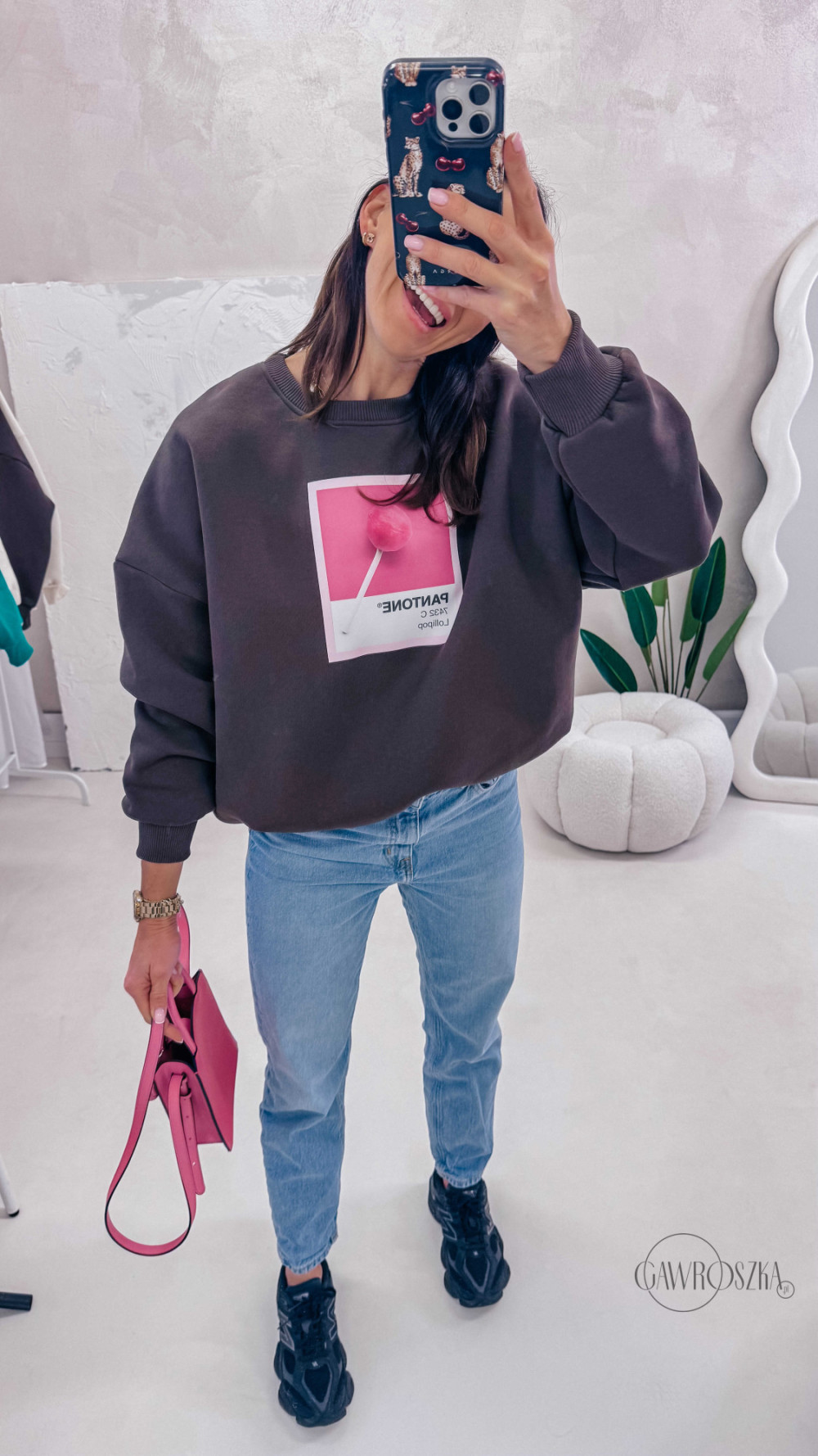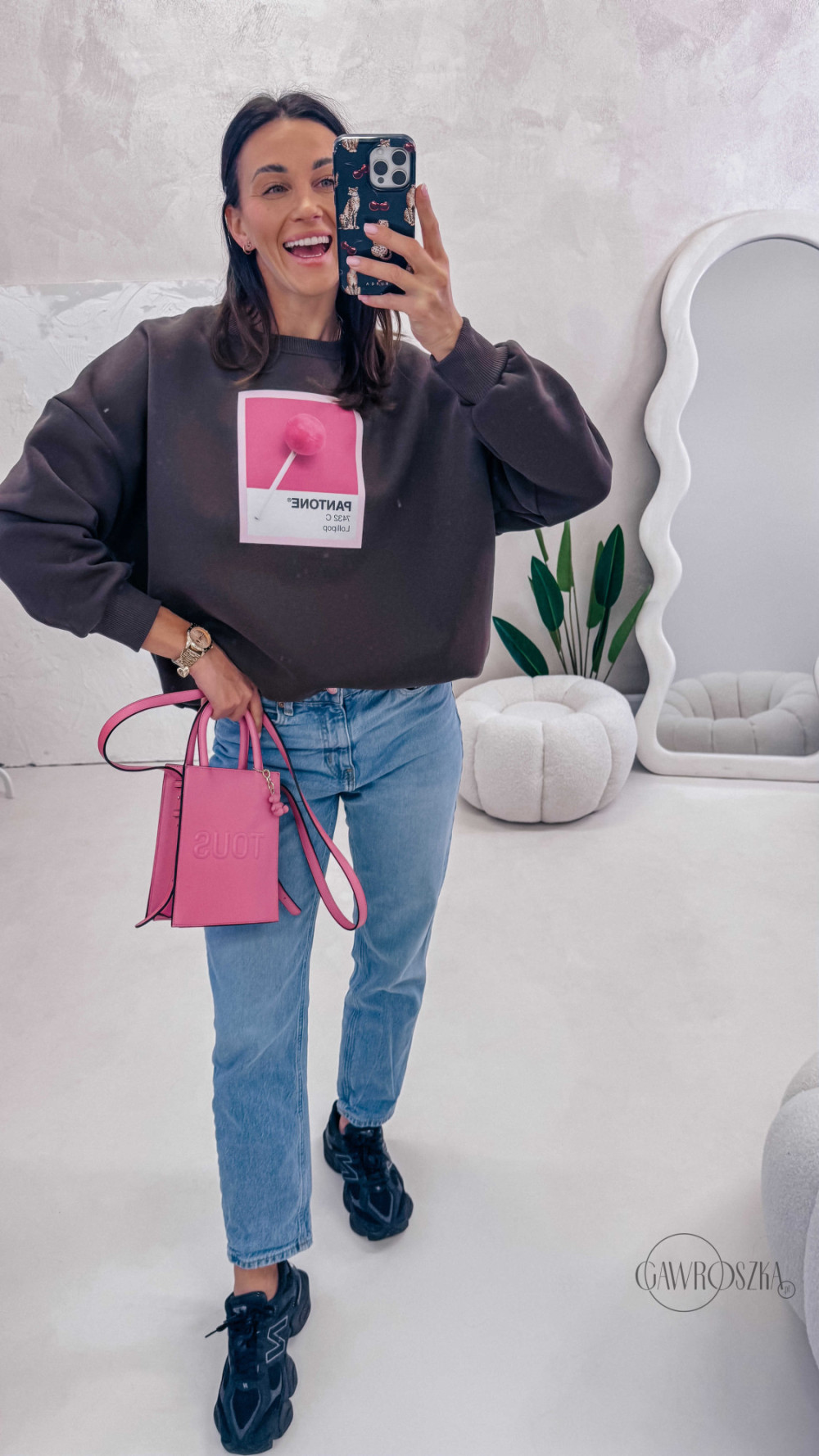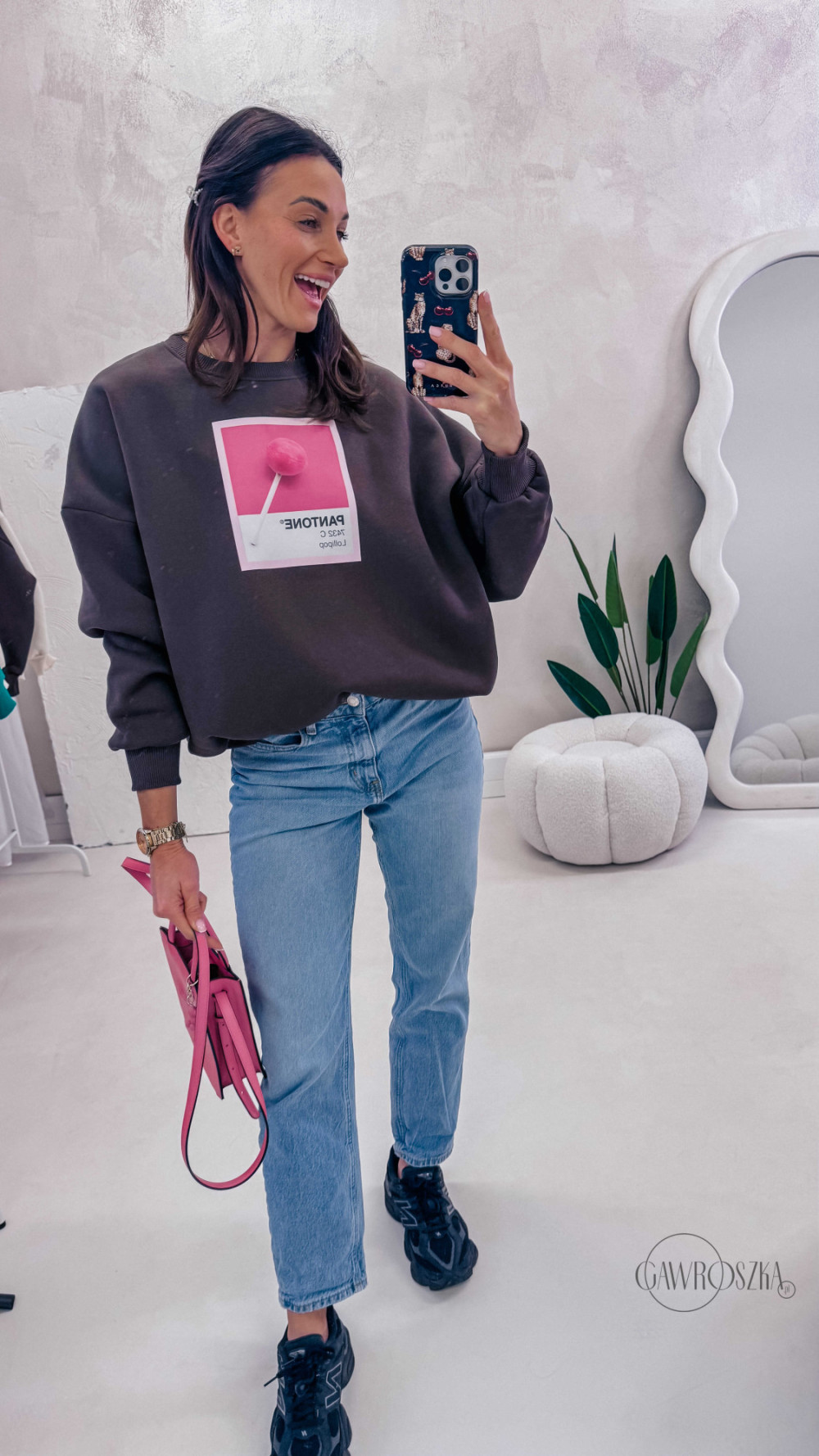 Graficzny print nadaje stylizacji wyrazistości i świetnie komponuje się zarówno z jeansami, jak i bardziej kobiecymi dodatkami. To bluza, która łączy komfort i modowy akcent.