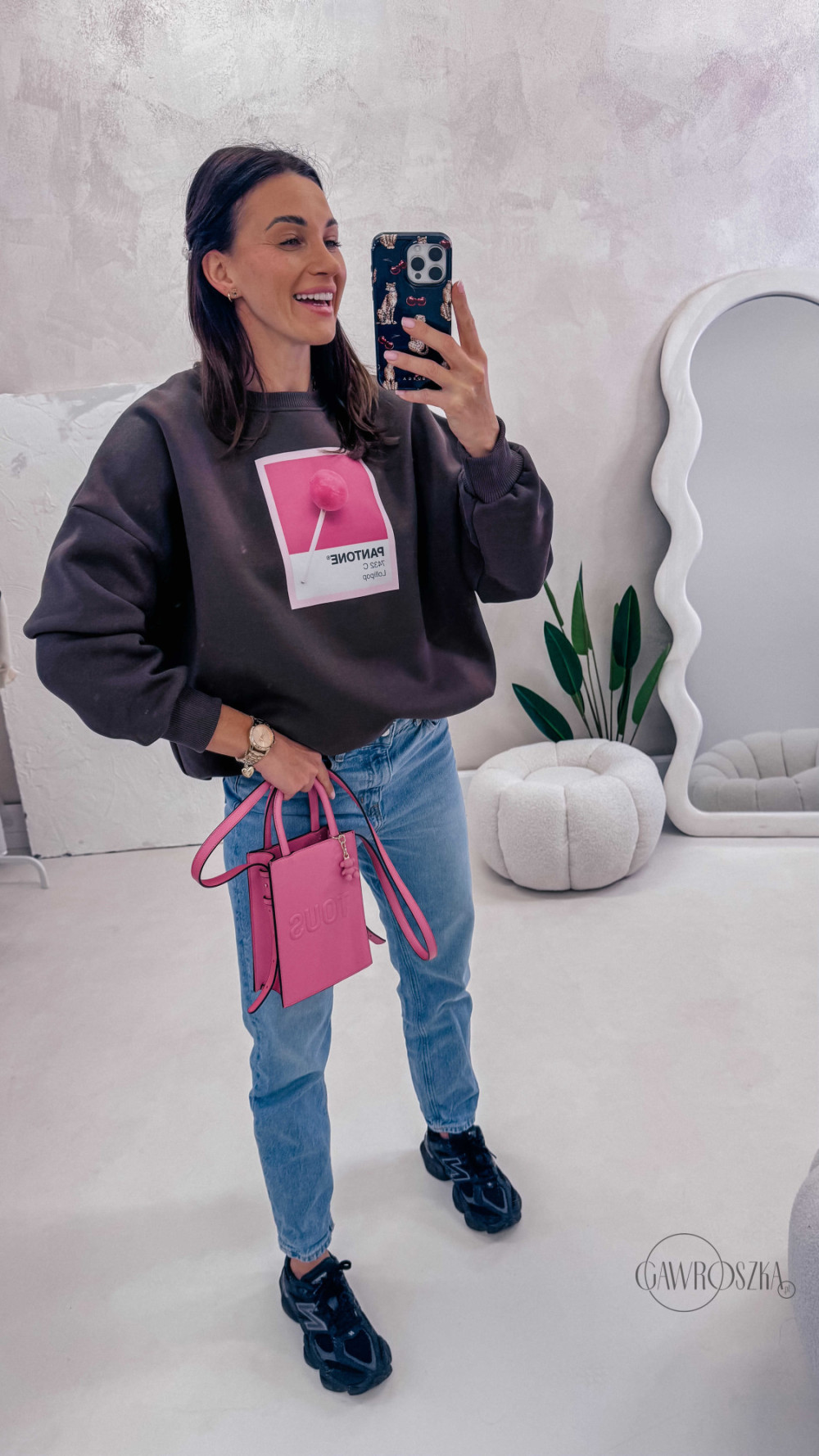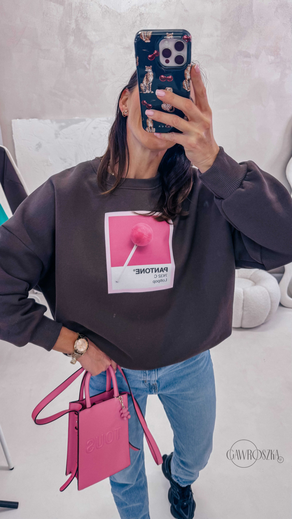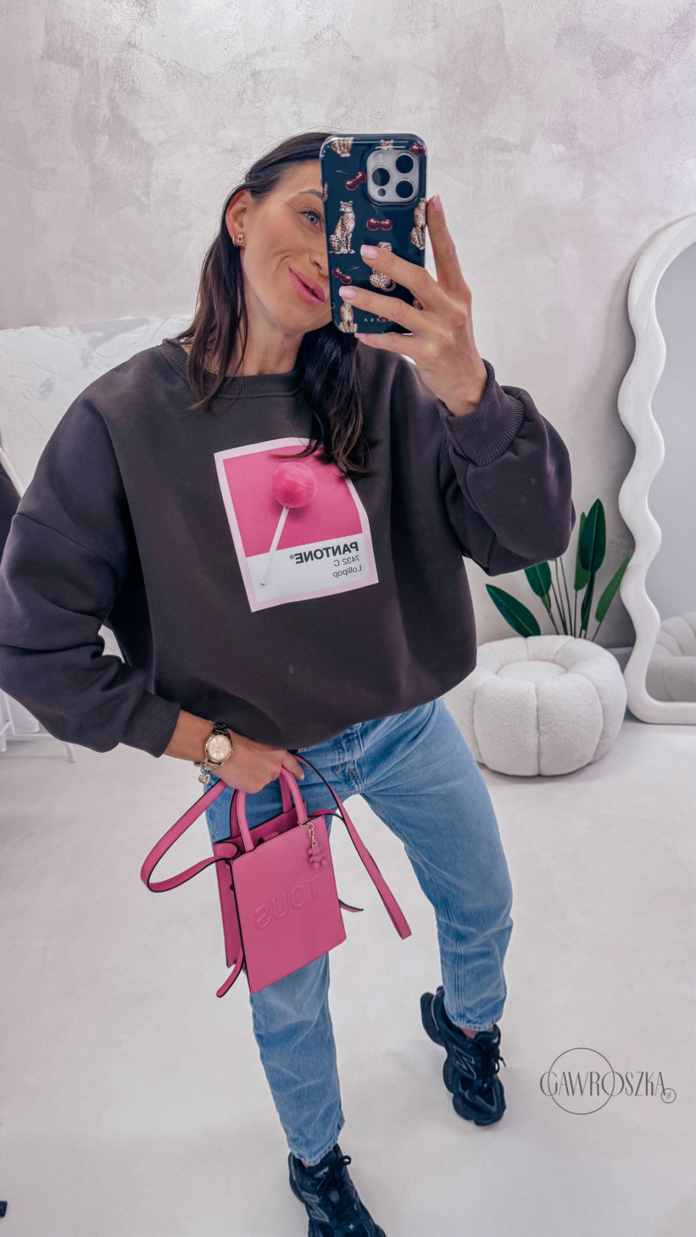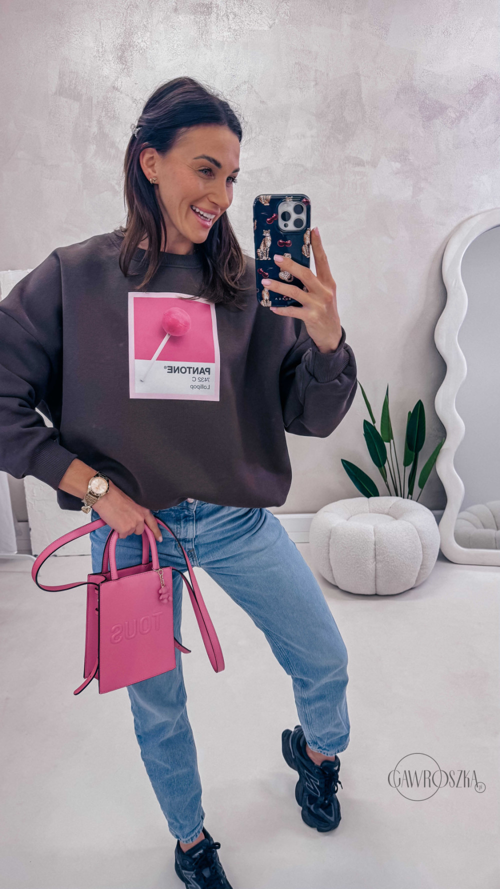 Graficzny print nadaje stylizacji wyrazistości i świetnie komponuje się zarówno z jeansami, jak i bardziej kobiecymi dodatkami. To bluza, która łączy komfort i modowy akcent.