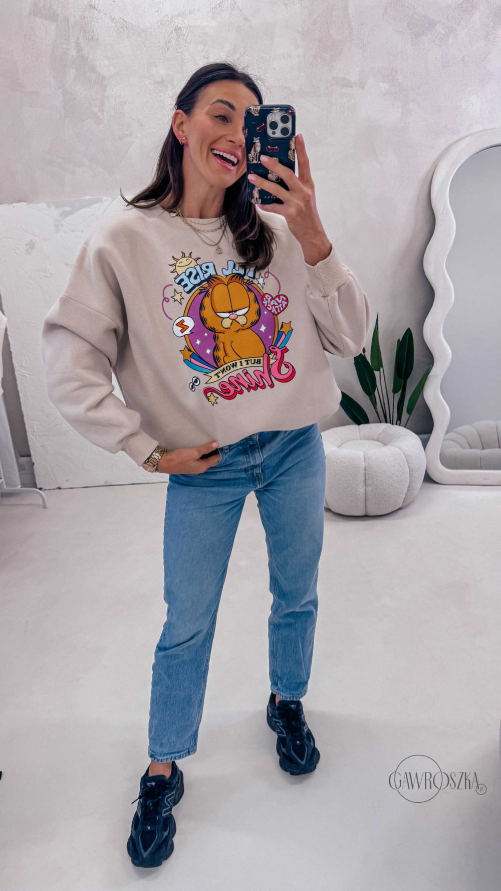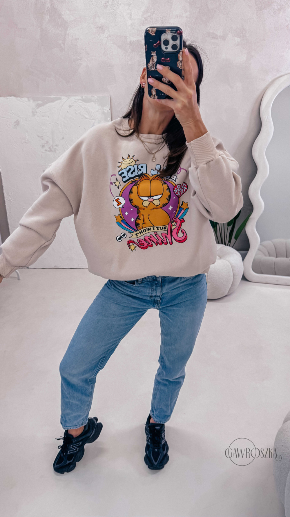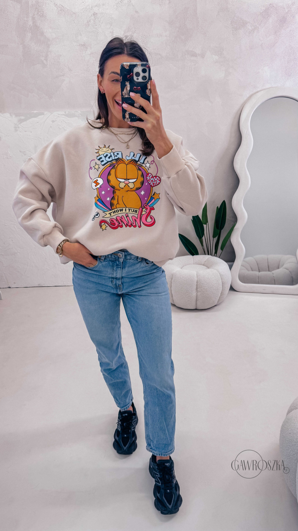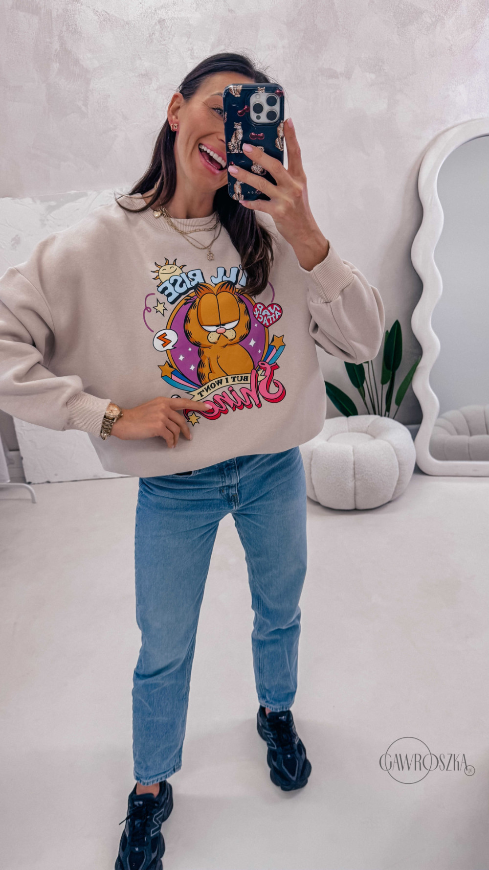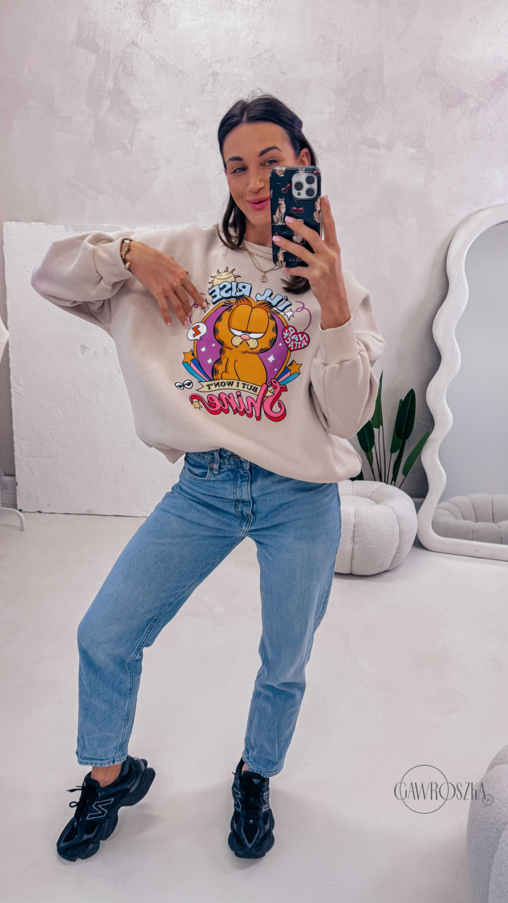 Luźna, miękka i z charakterem — bluza z kultowym Garfieldem to idealny wybór na co dzień. Przyjemna w dotyku tkanina i swobodny krój zapewniają komfort noszenia, a wyrazisty nadruk dodaje stylizacji humoru i luzu. Świetnie sprawdzi się zarówno z jeansami, jak i w bardziej casualowych zestawach.