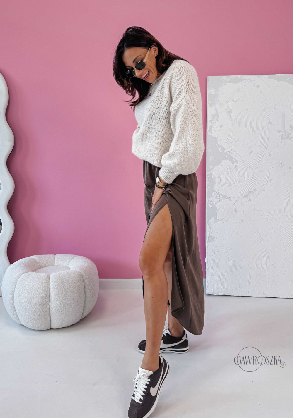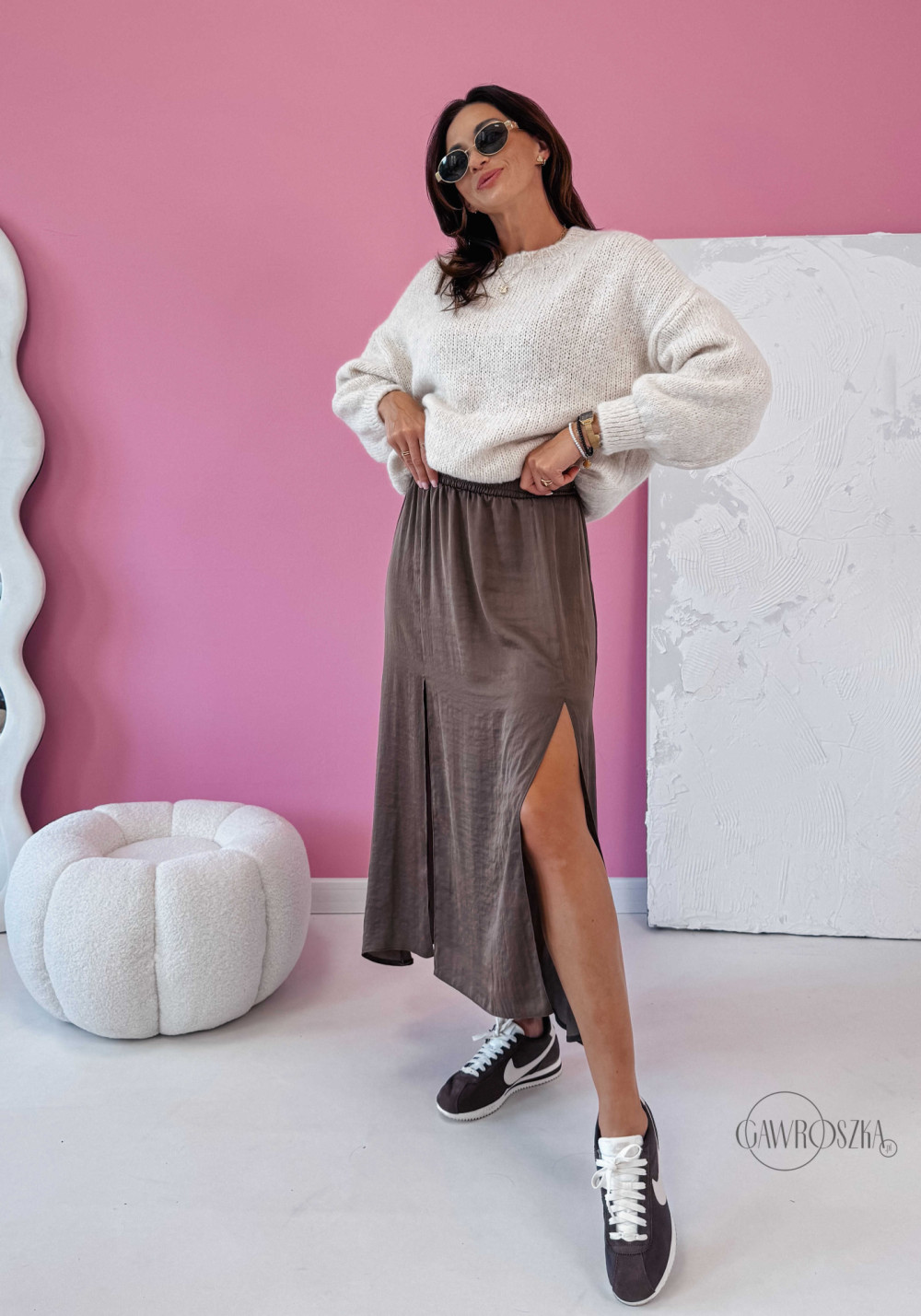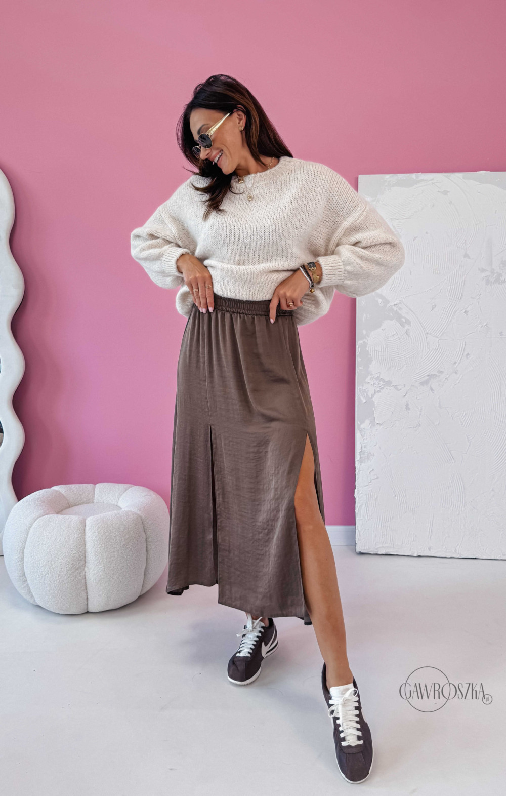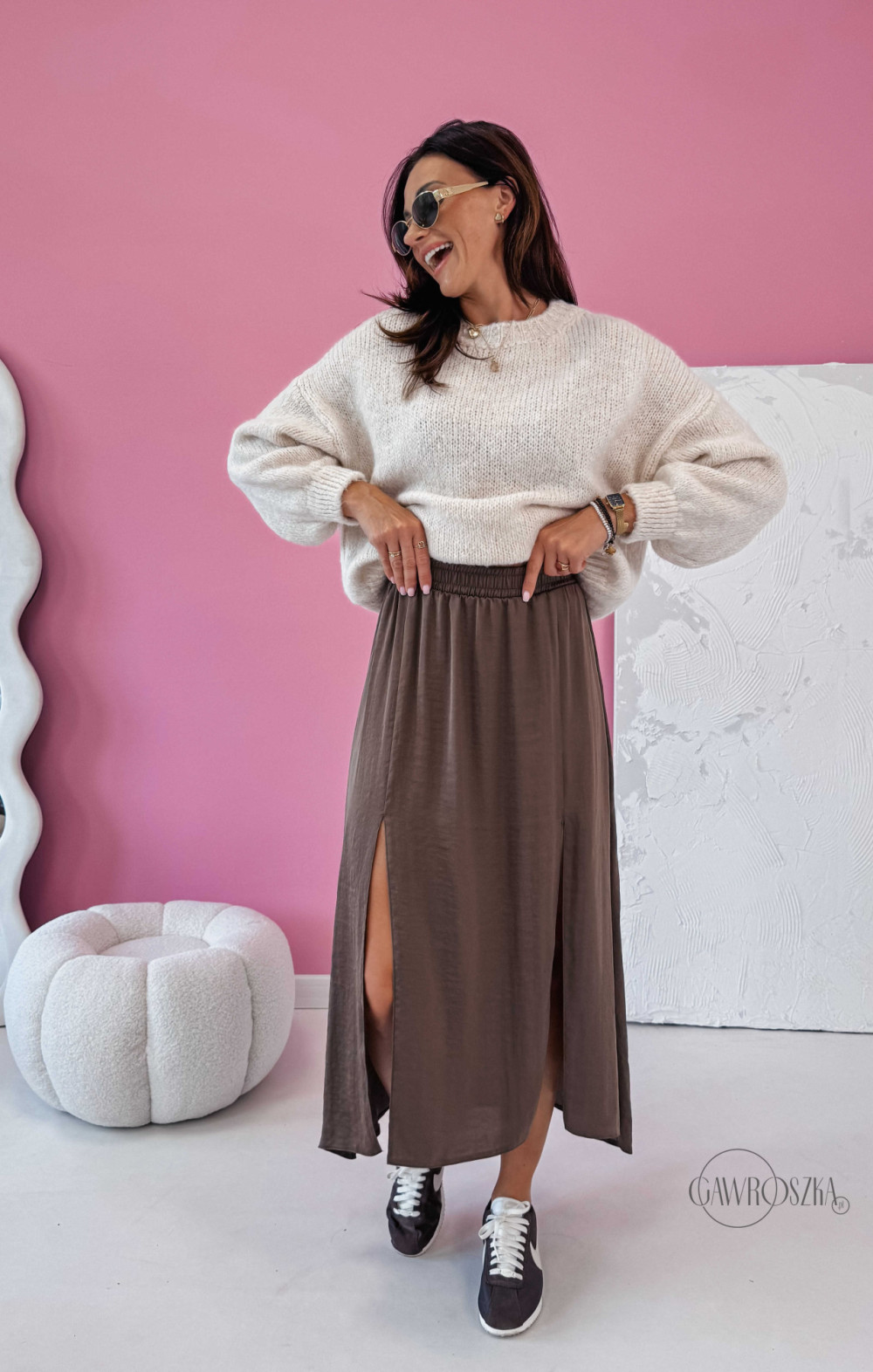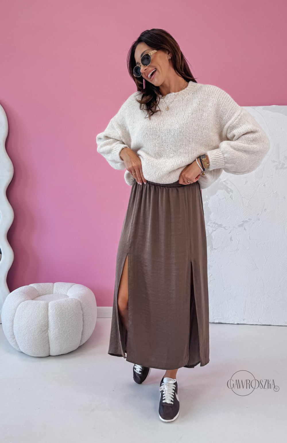 Spódnica z dwoma rozcięciami Pola - jasna czekolada