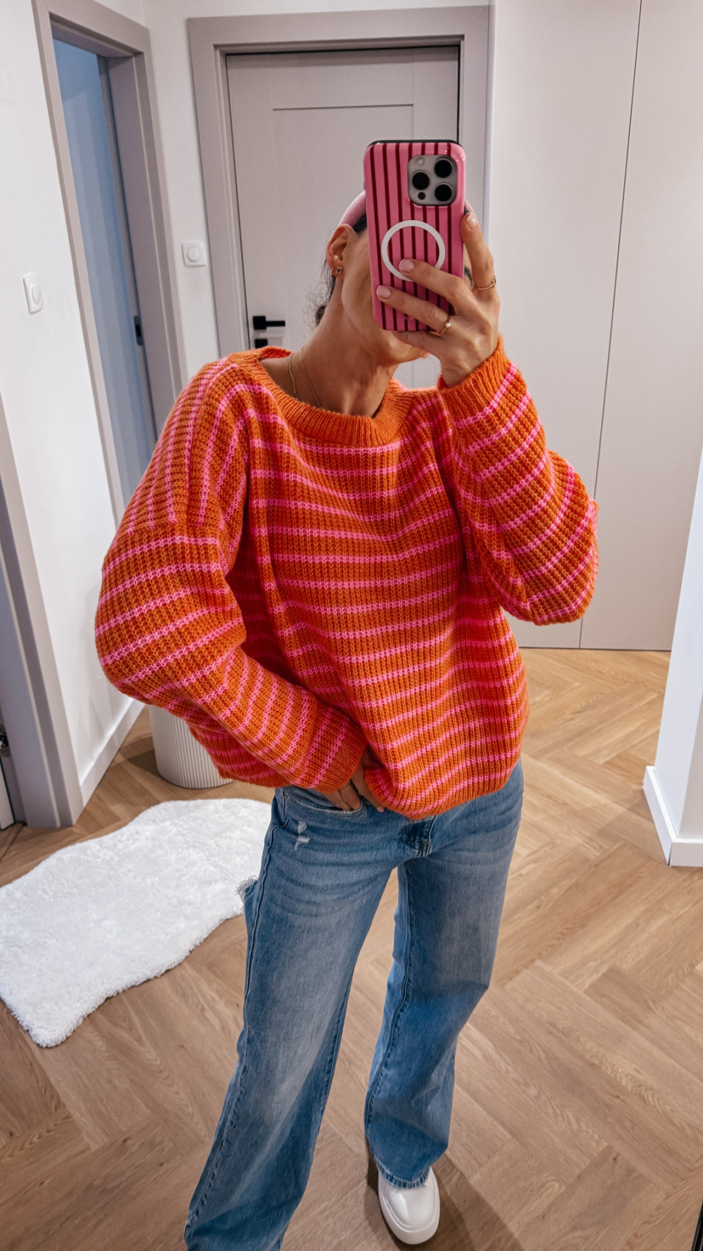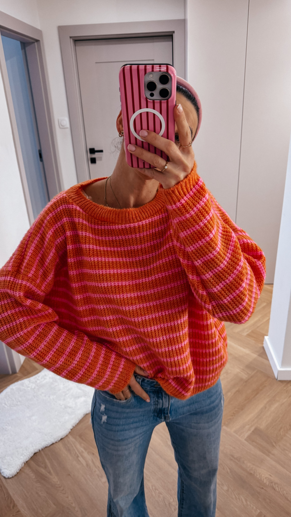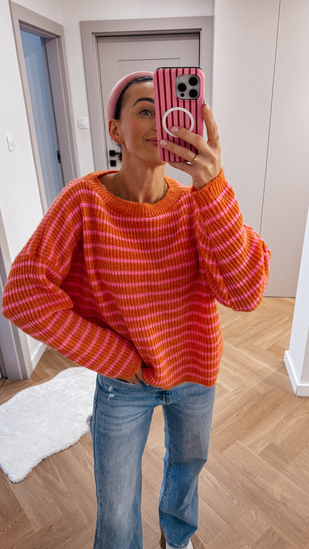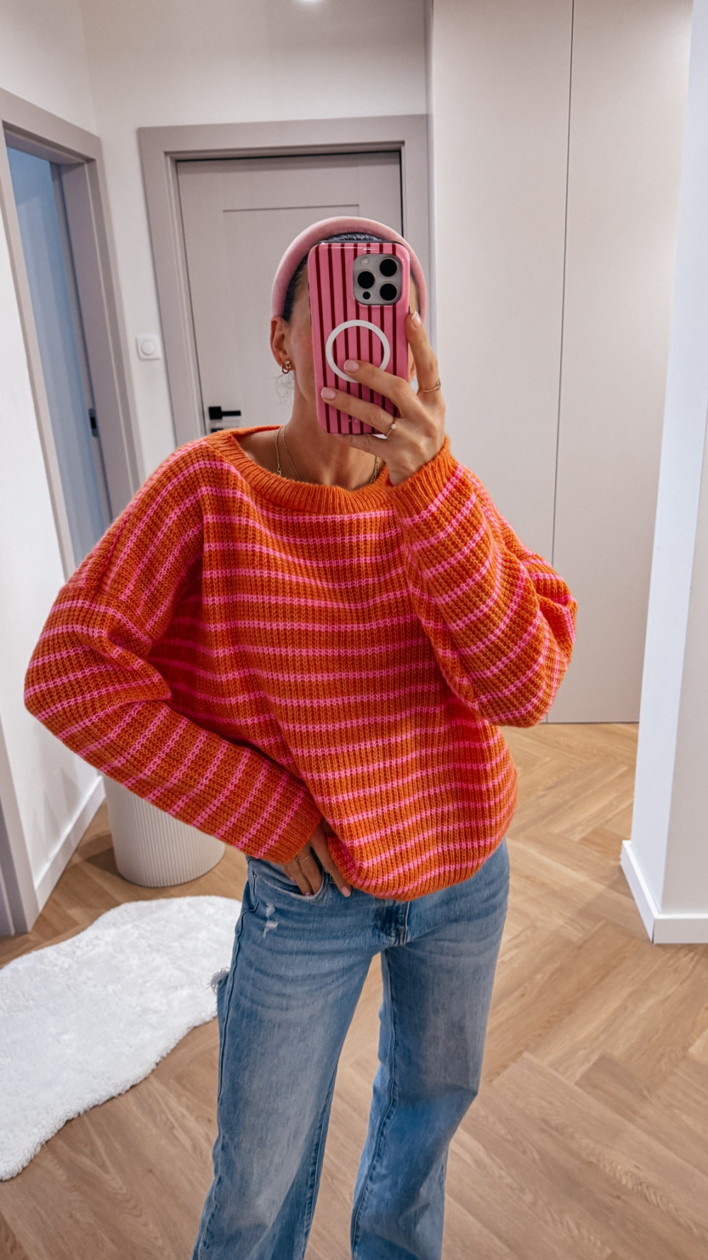 Sweterek w paski SPRING - pomarańcz