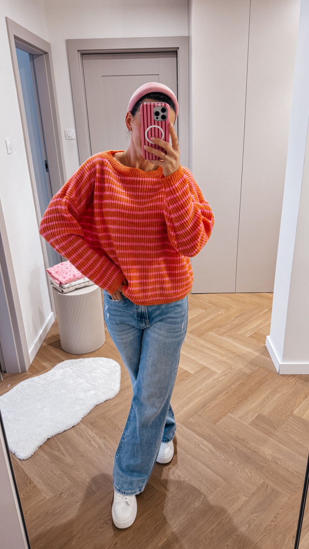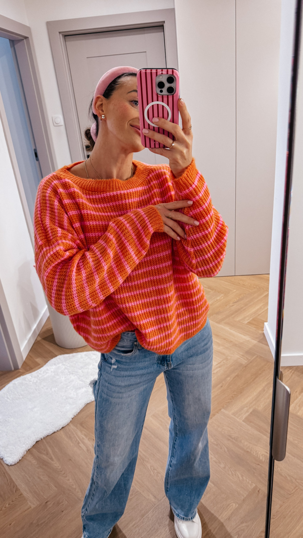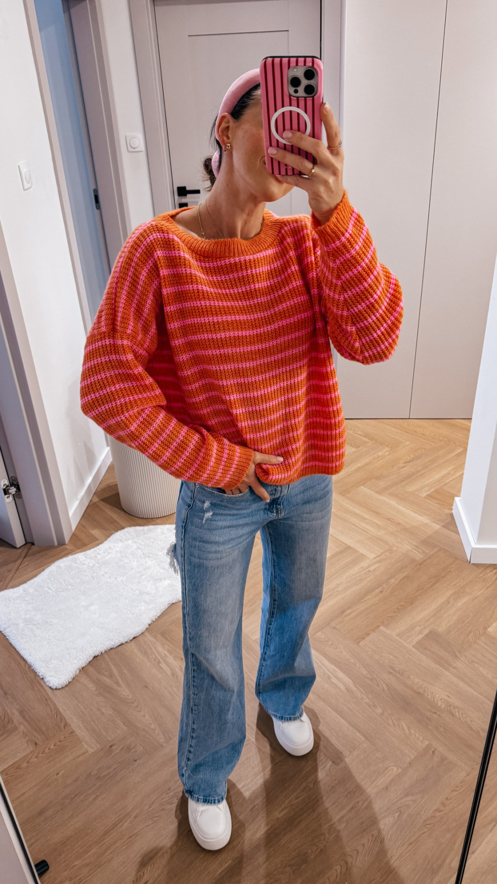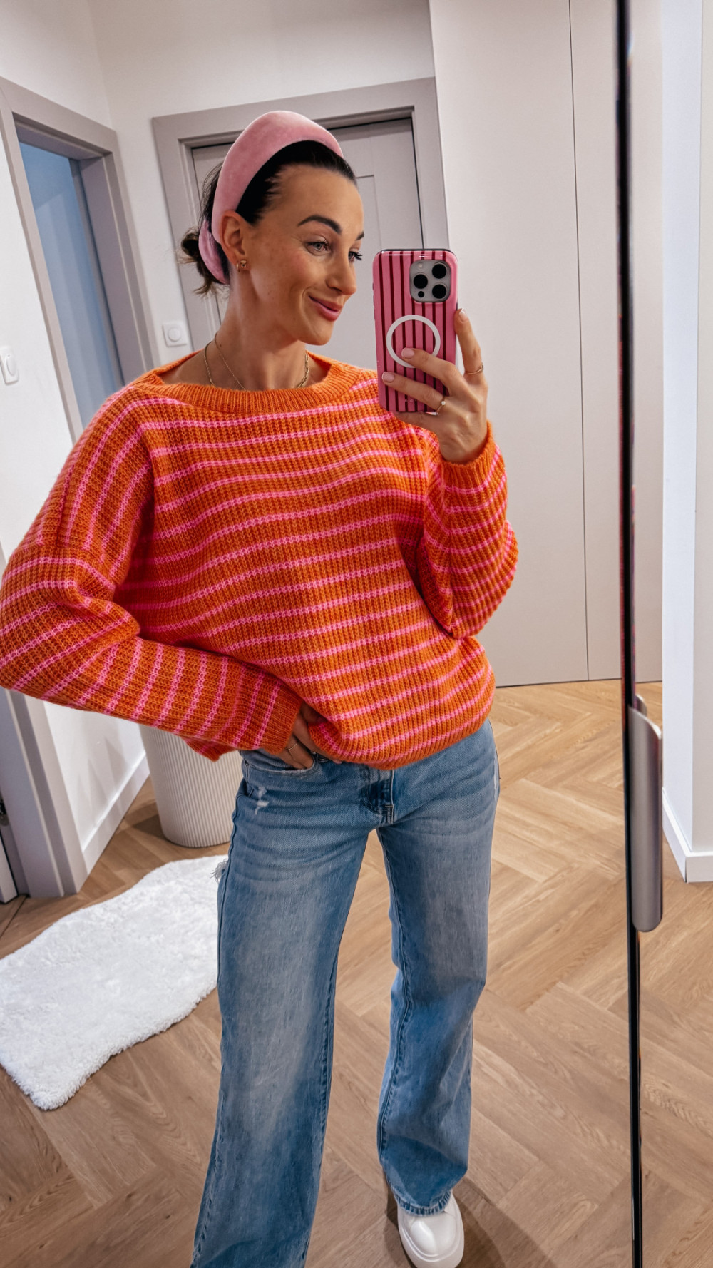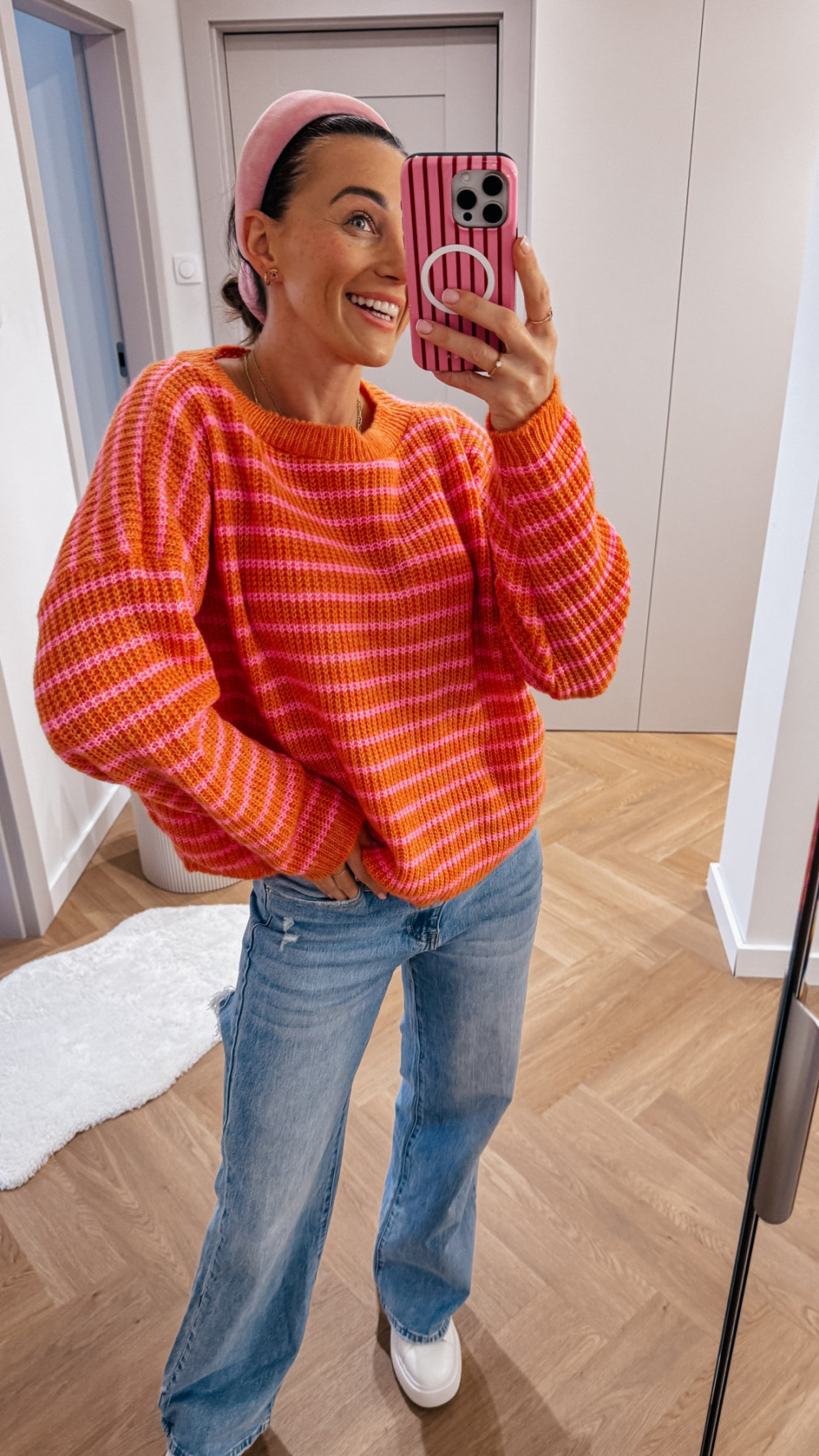 Sweterek w paski SPRING - pomarańcz